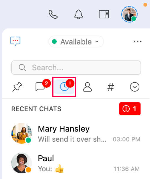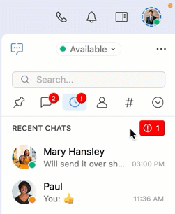 | | Shows the number and list of unsent chats within the Recent Chats tab. |