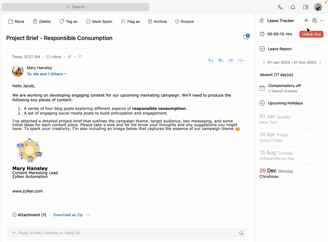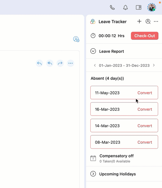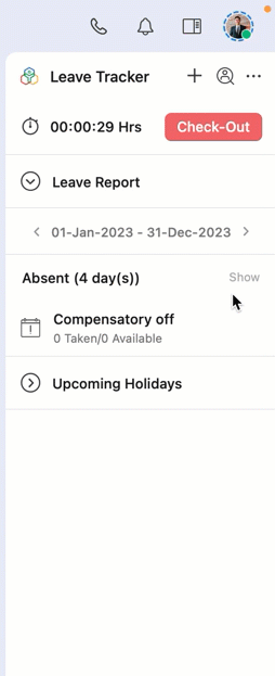 In this article, we'll see how the Leave Tracker widget in Trident enables you to apply for leave, record attendance and working hours, view your leave report and upcoming holidays, and look up details about organization members.