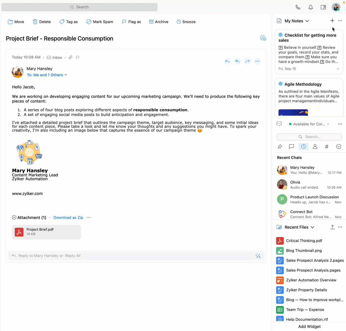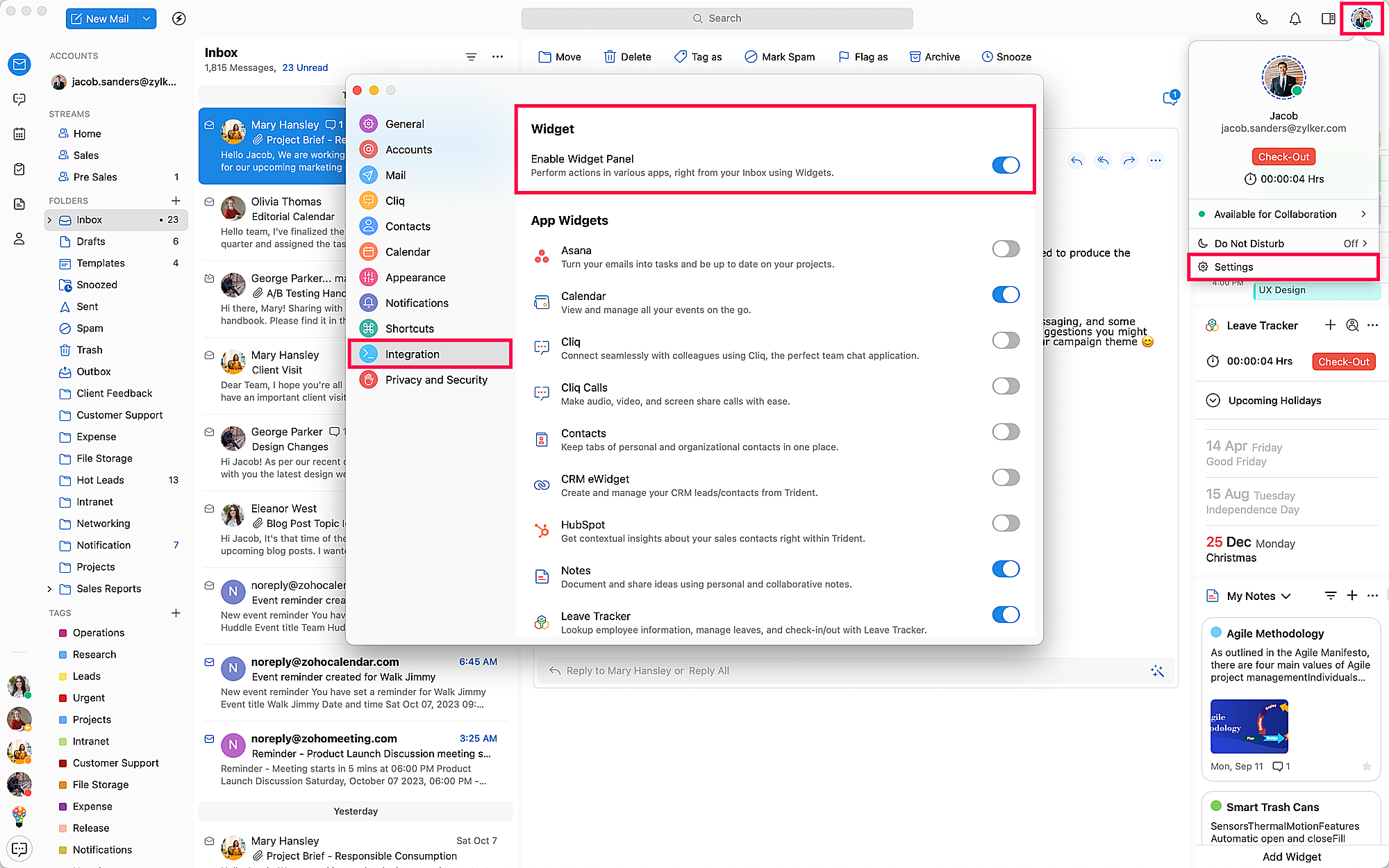 The Widgets in Trident help you integrate with plenty of Zoho and third-party business apps to help you multitask with ease and efficiency.