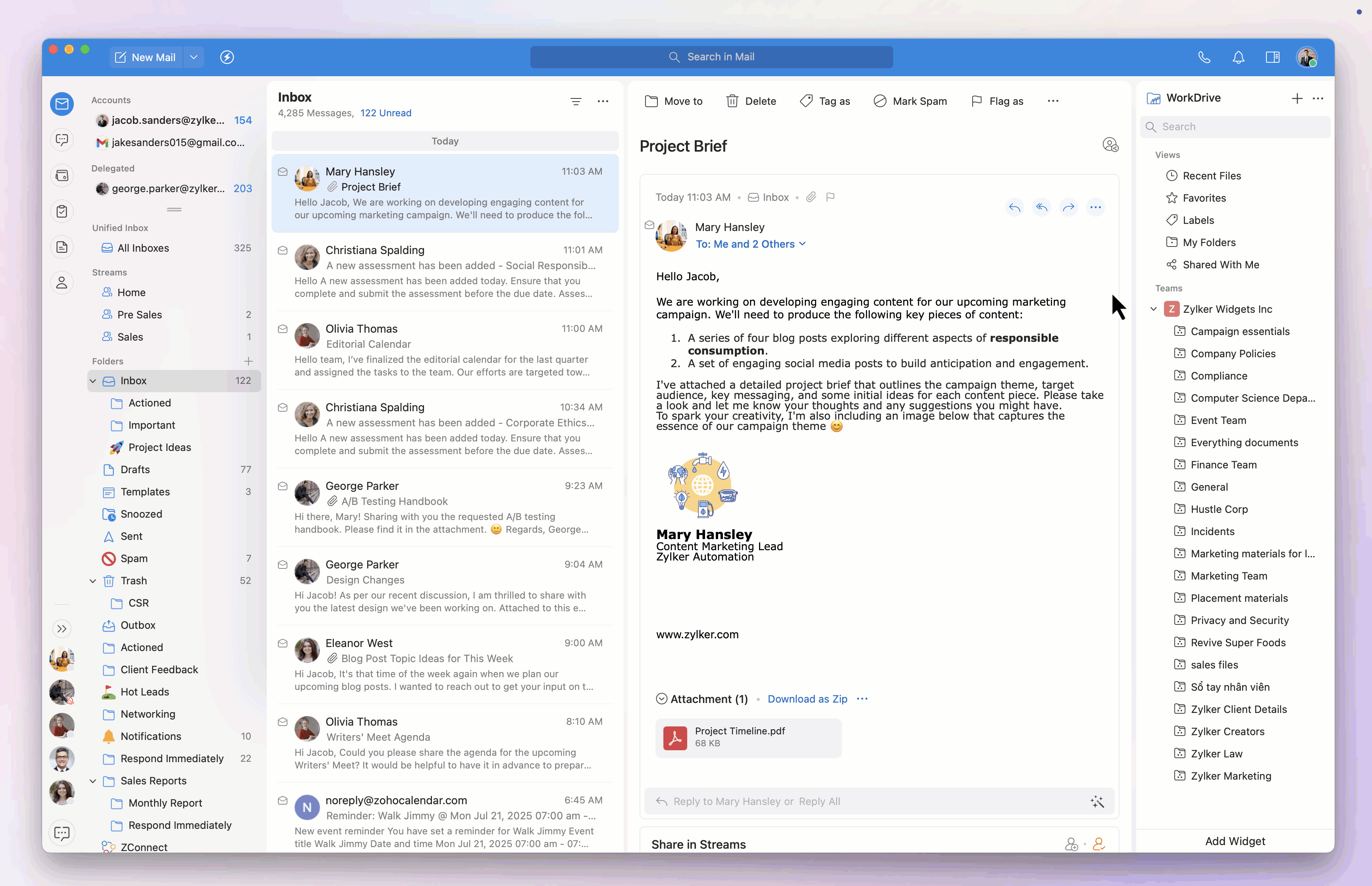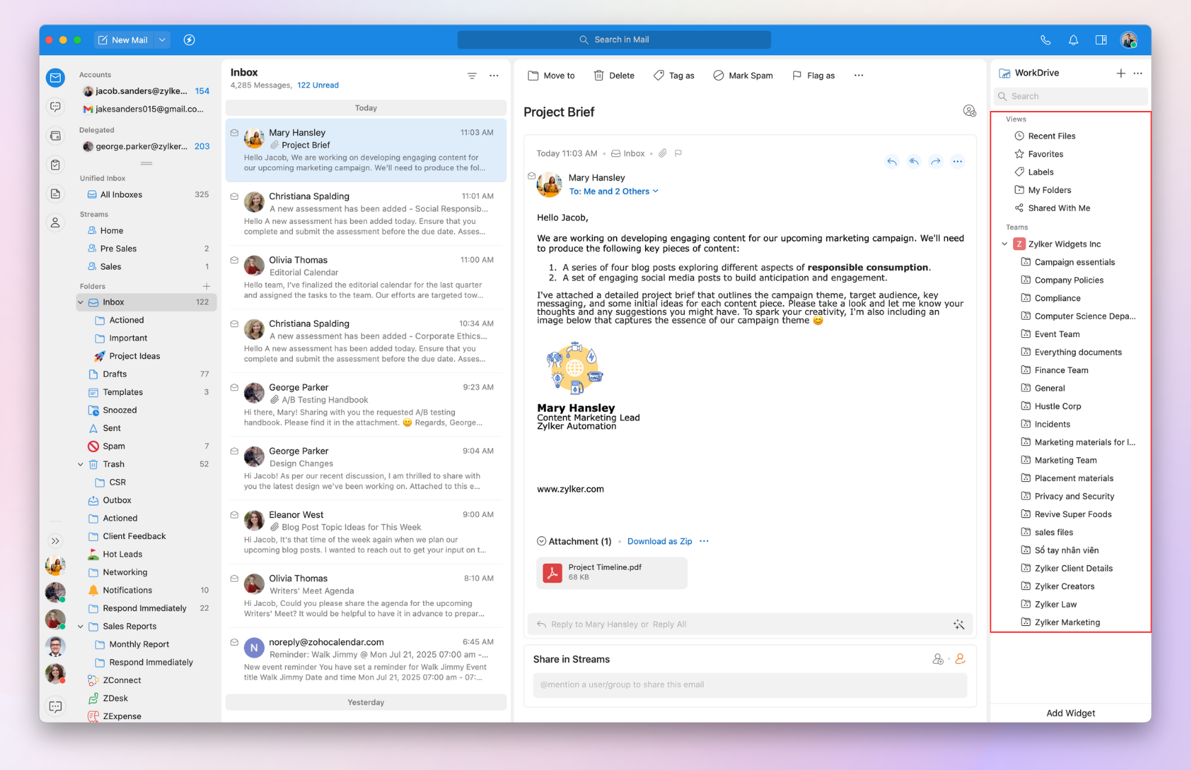 You can preview, download, and print file formats such as PNG and PDF from the WorkDrive widget.