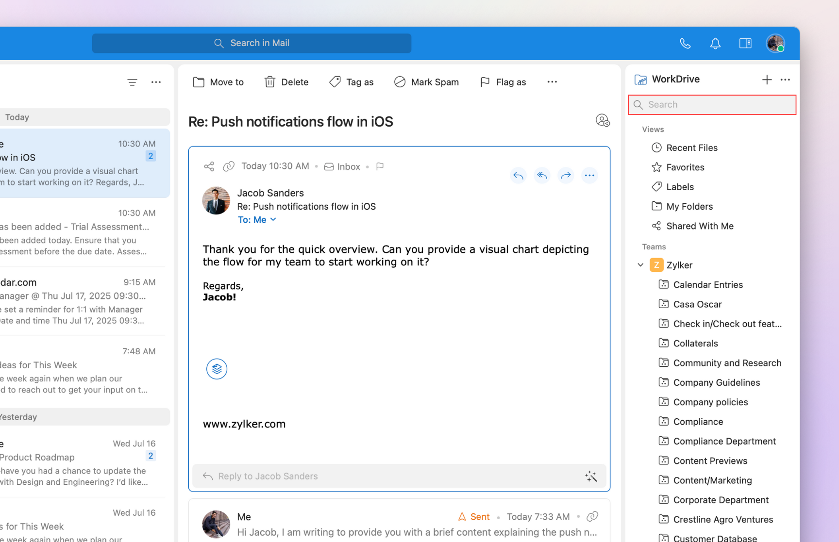 Select Add to WorkDrive from the menu list.
