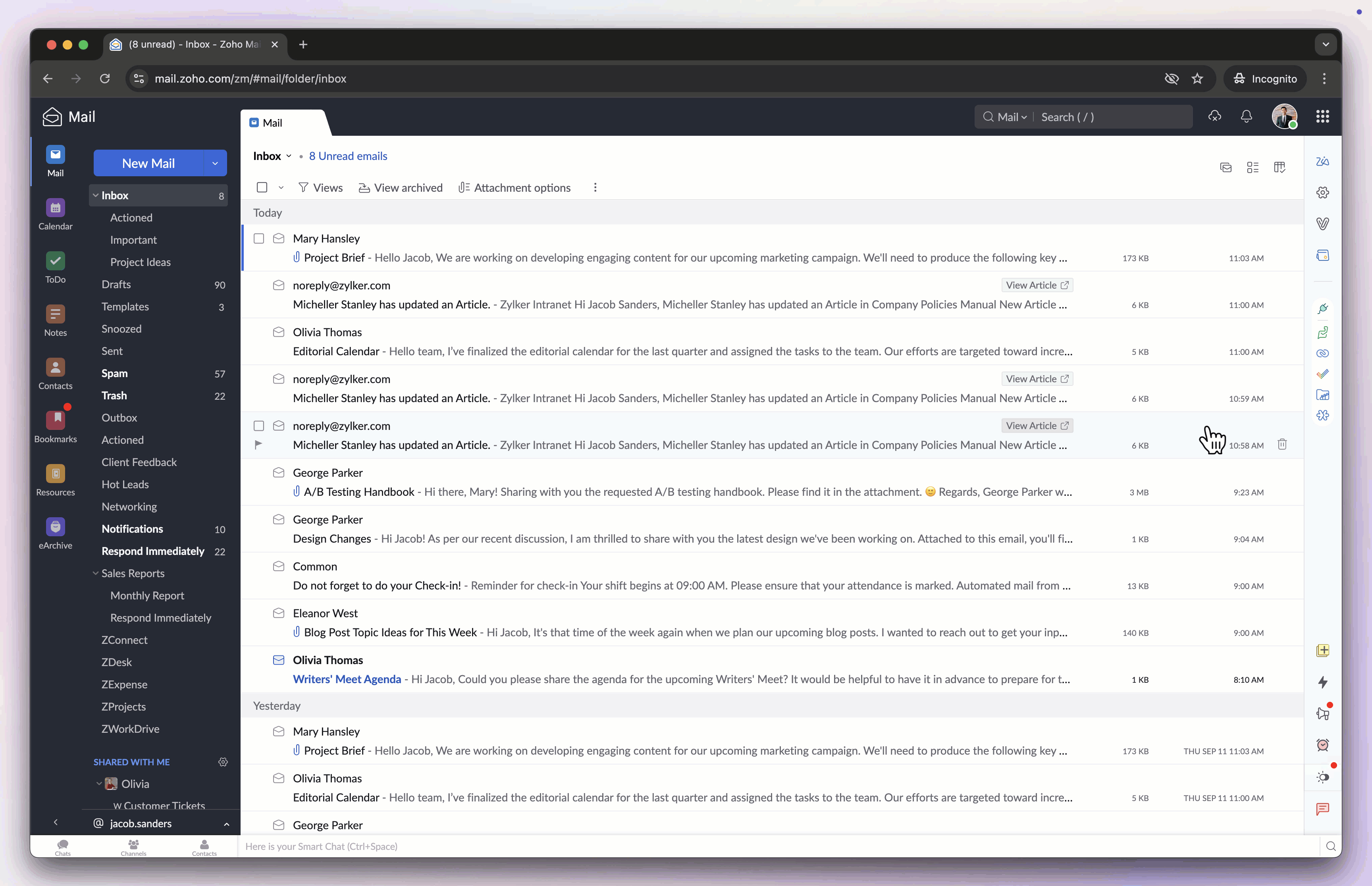 In this section, you can view all the folders you’ve created from the Zoho Vault web app and that have been shared with you. Clicking on a folder will display the passwords saved in it.