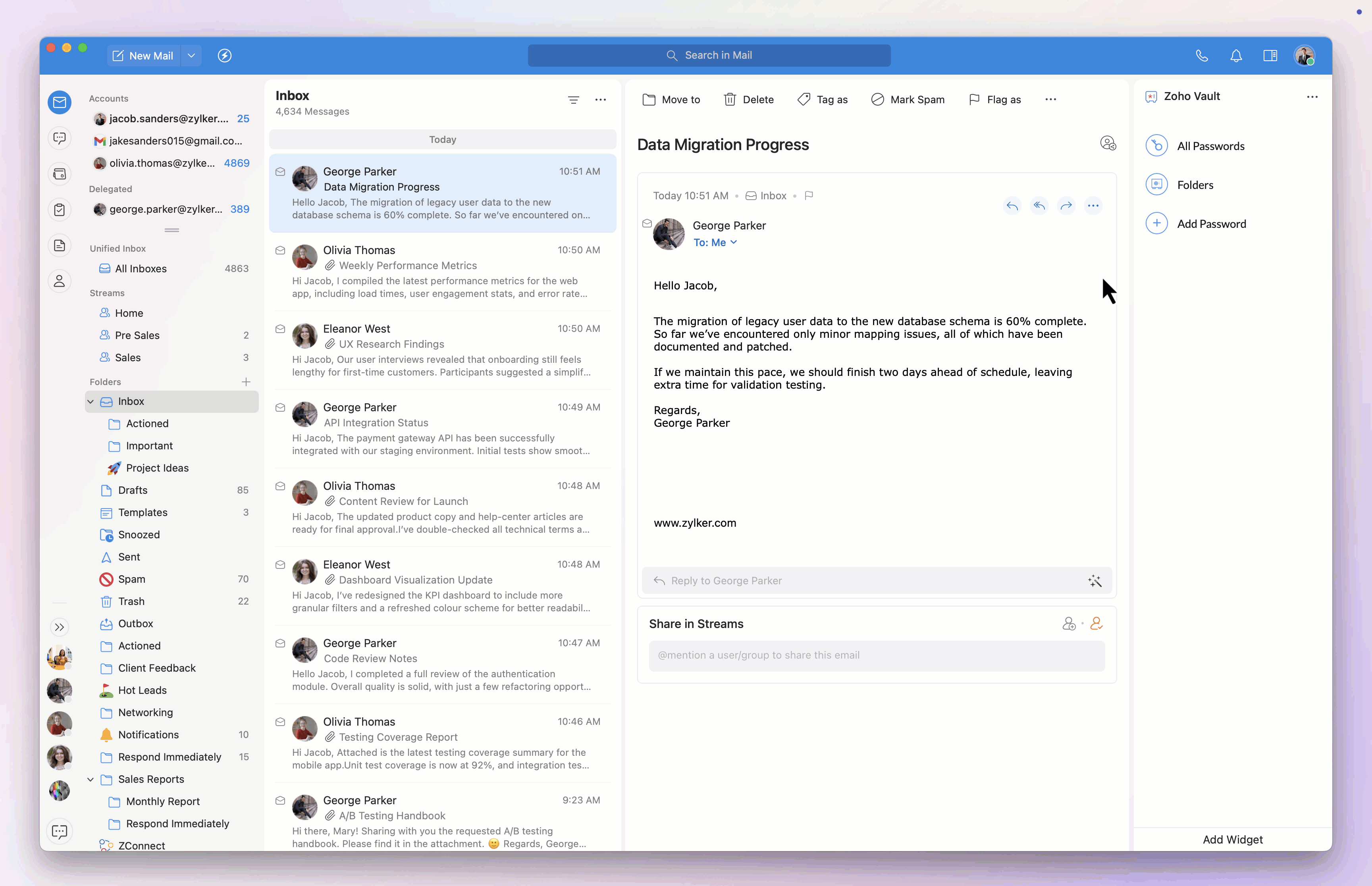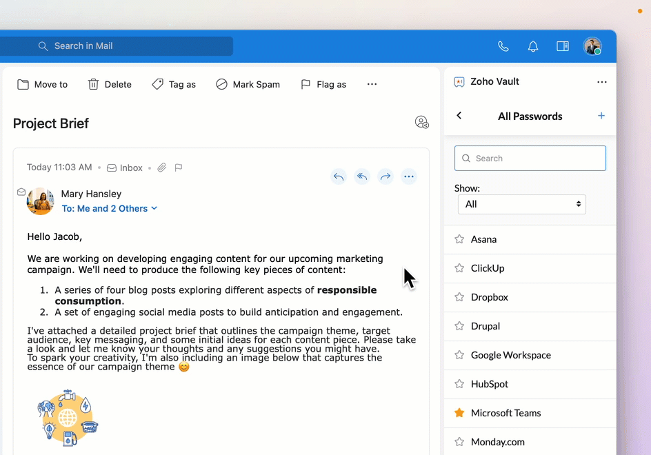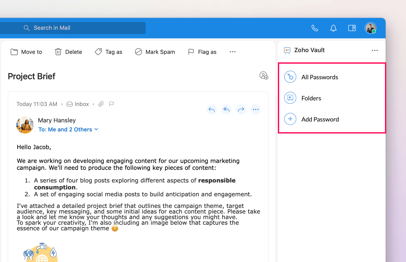You’ll be redirected to the Zoho Mail web app. Enable Zoho Vault in the top-right corner, then return to Trident.