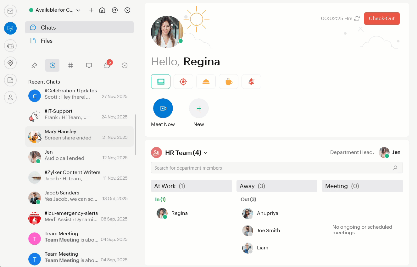 Open the contact card or the contact details of the coworker whose current status matches one of the conditions mentioned below.