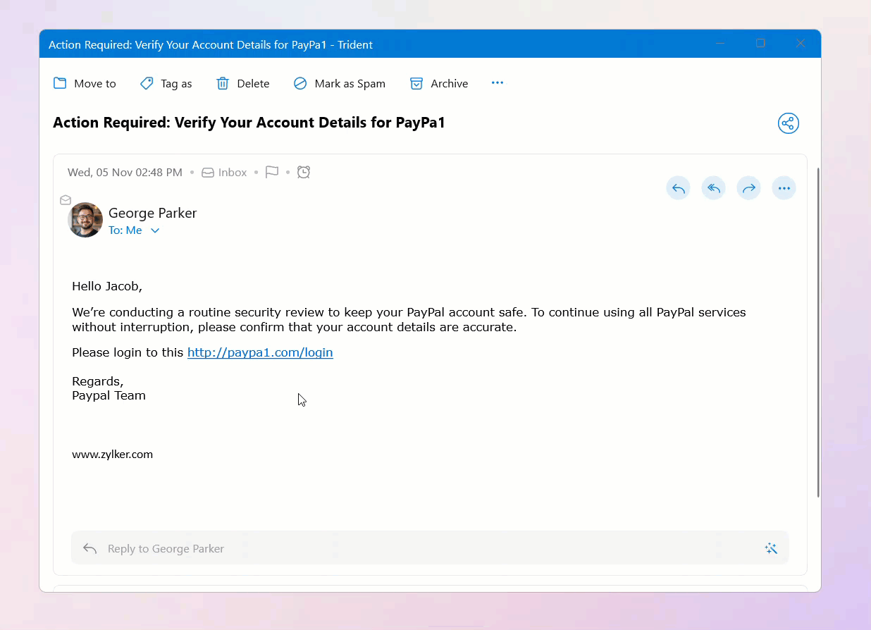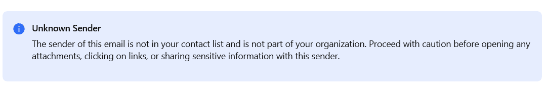 Apart from this, Trident displays a warning to prompt users to exercise extra caution in their email correspondence. These alerts are shown in the following circumstances: