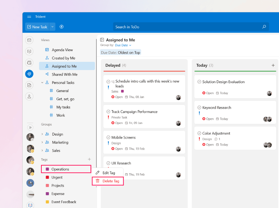 Note: The available sorting options may vary depending on the selected view in the left pane.Navigate to the ToDo module.