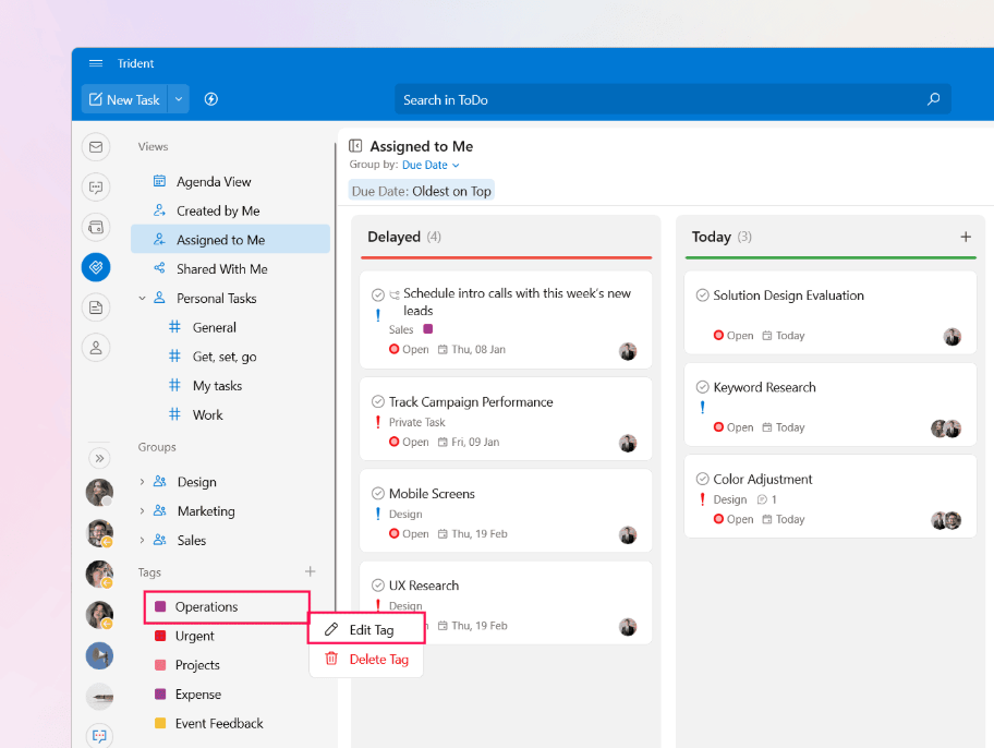 After you have created a task, you can edit the title, description, priority, due dates, and change or remove assignees whenever you need. To edit a task: