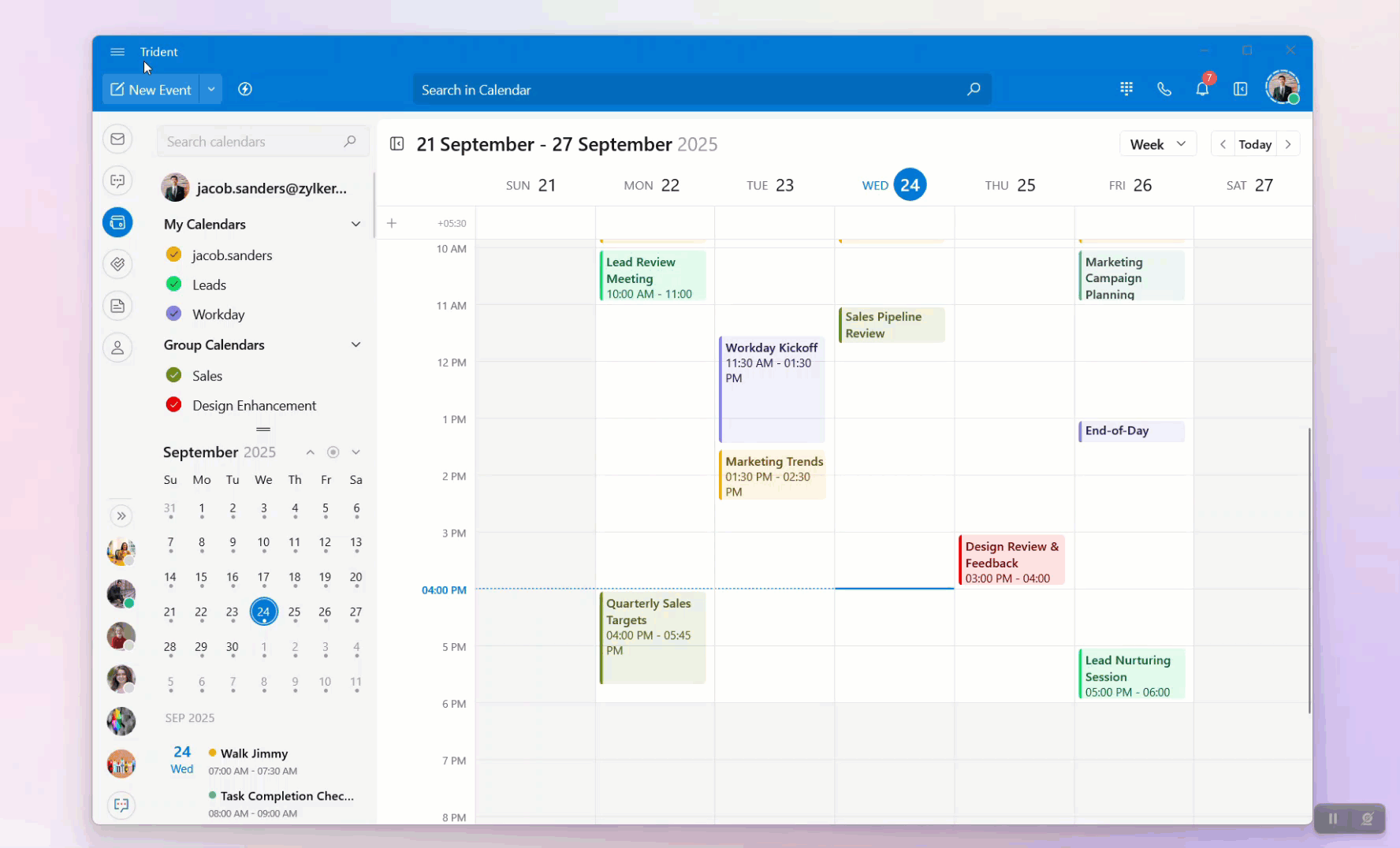 In Trident, you can view your planned schedules in daily, weekly, monthly, or work-week views. To set any of these as the default view when you open Trident: