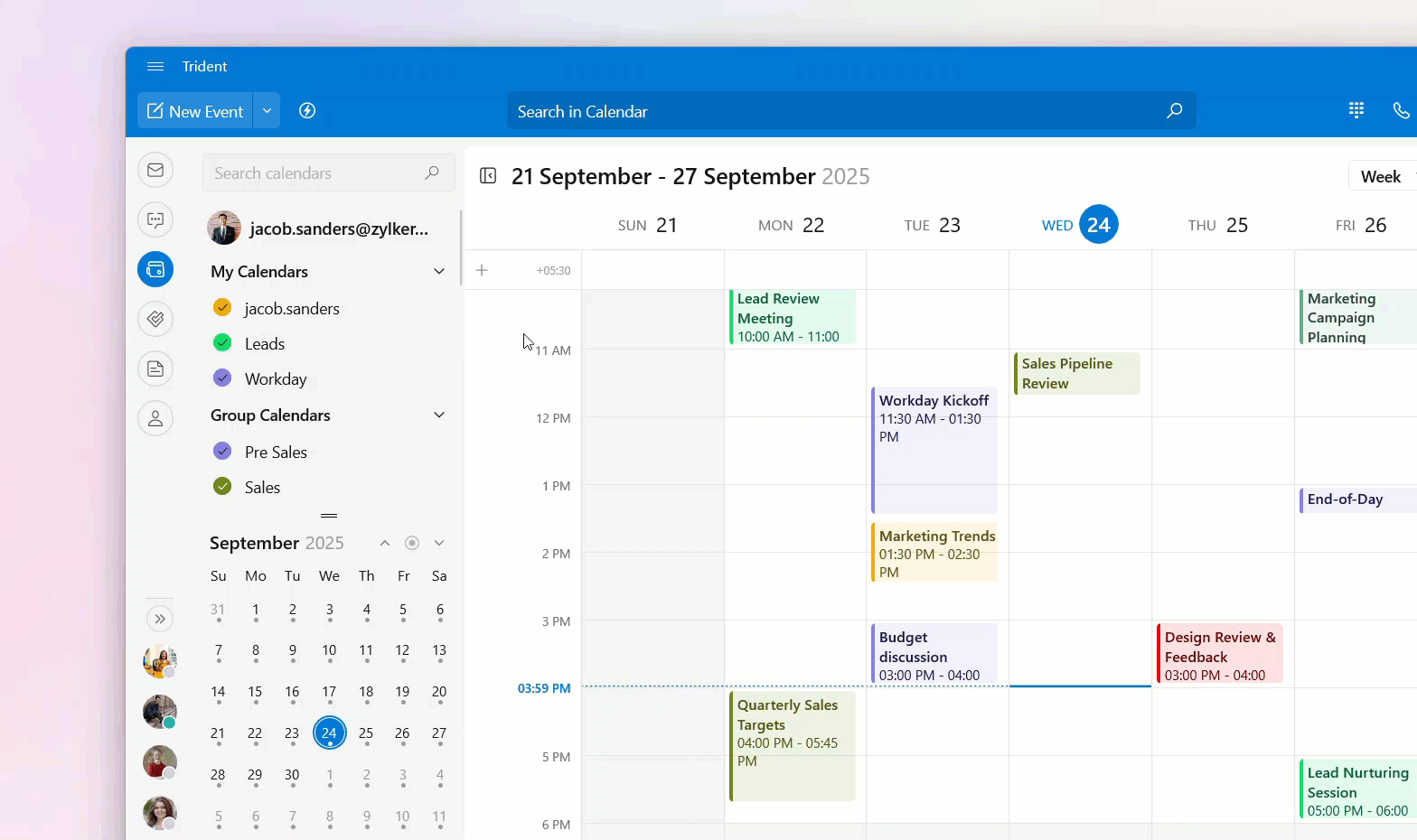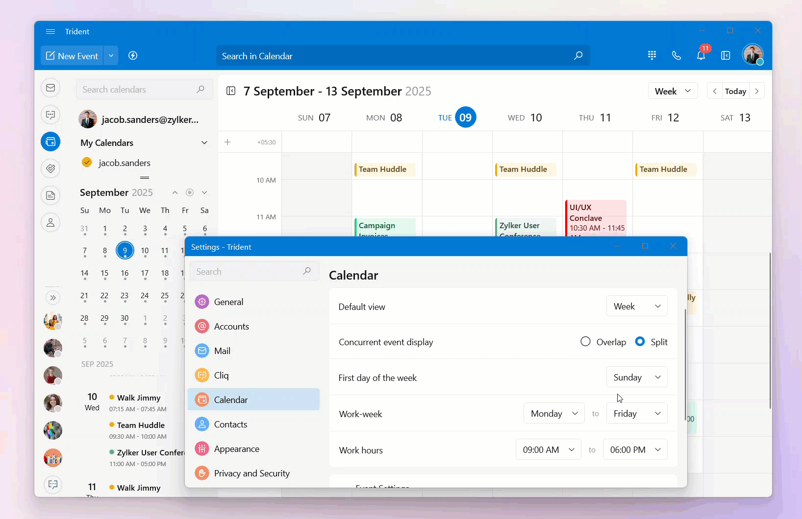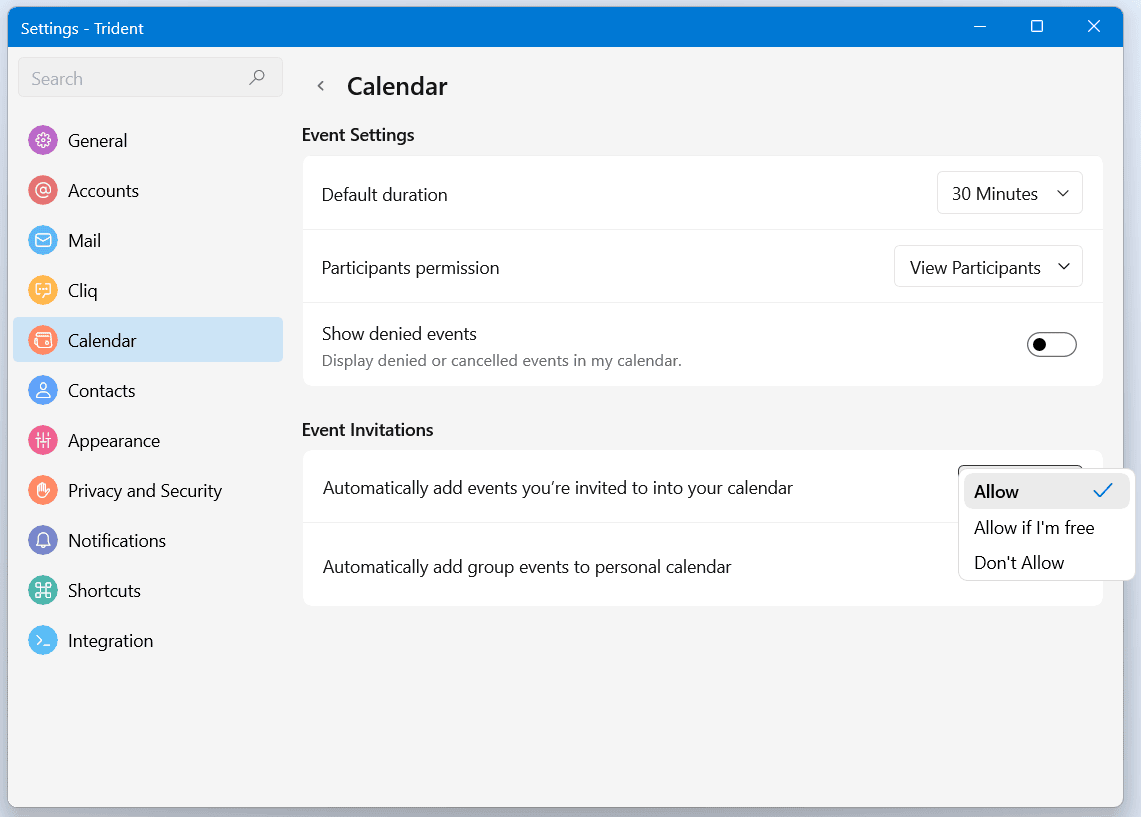 With Trident's event settings, you can set event duration participant permissions, manage event invitations, and more.