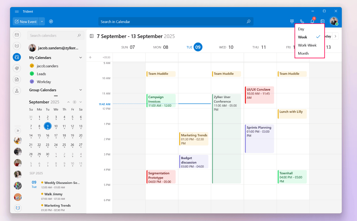 You can customize the way you want to display your calendar using the various set of views available in Trident.