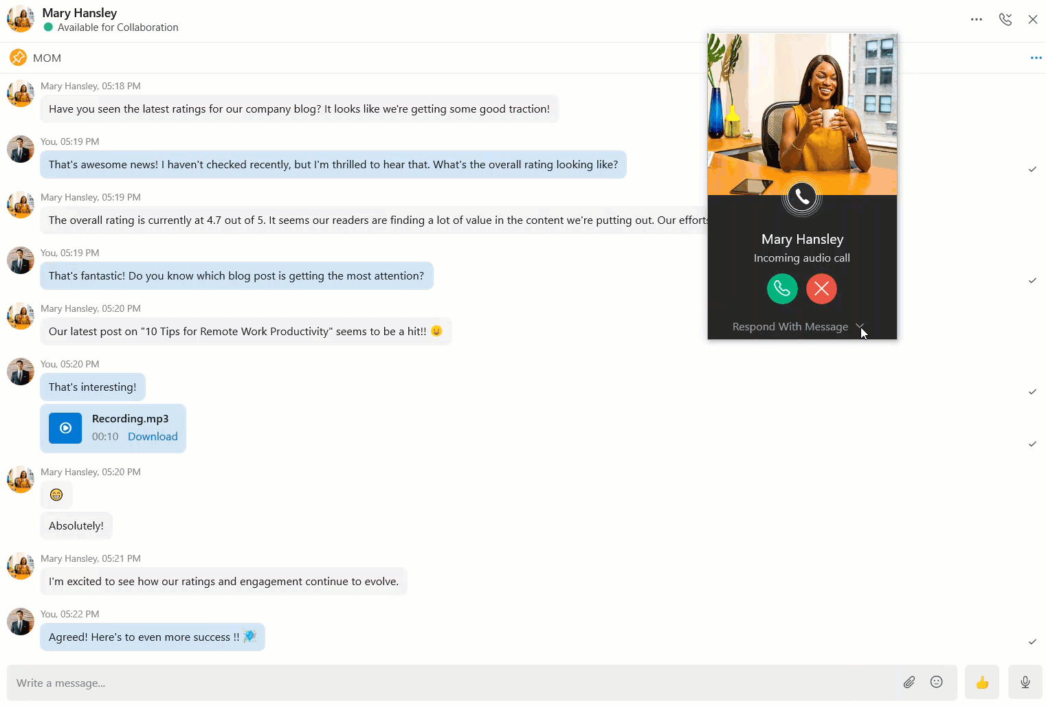 When you receive a call, you can choose to accept, decline, or respond to it with a message.