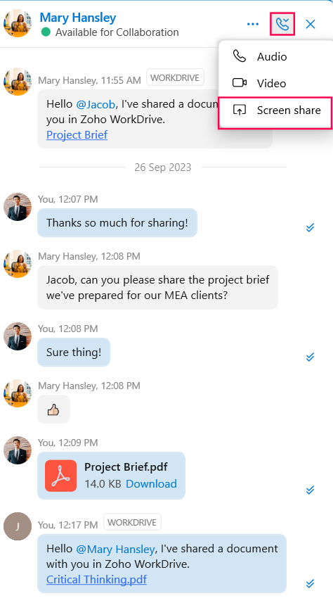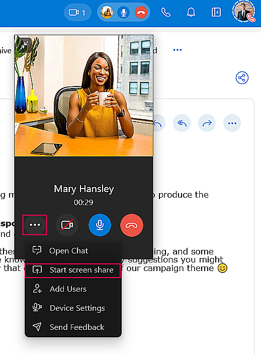 Click the More Options icon and select Start Screen share to share your screen.
