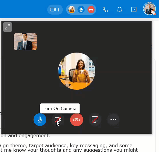 To turn on or off your video, click the Camera icon.