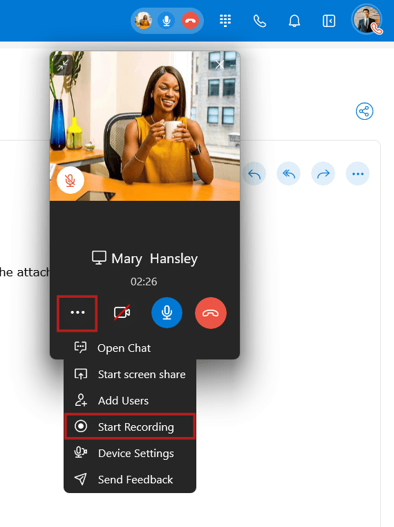 Click the Video icon in the call window to convert audio call into video call.
