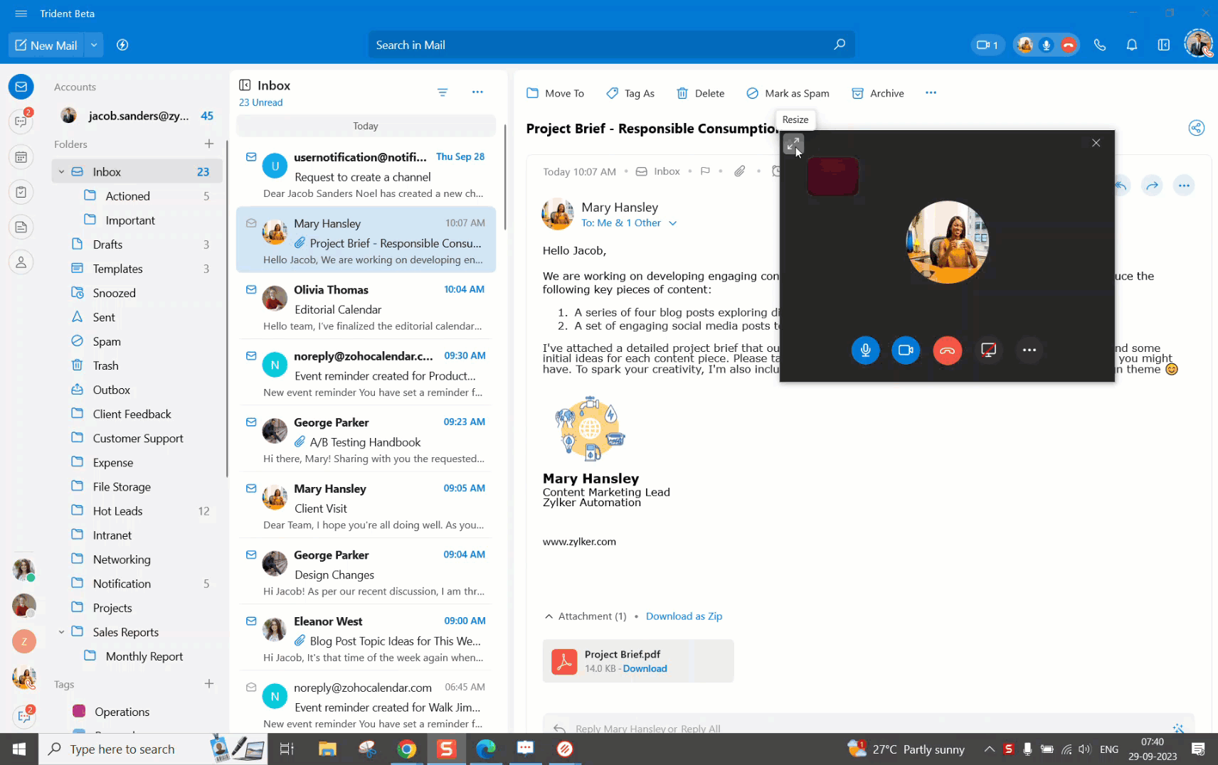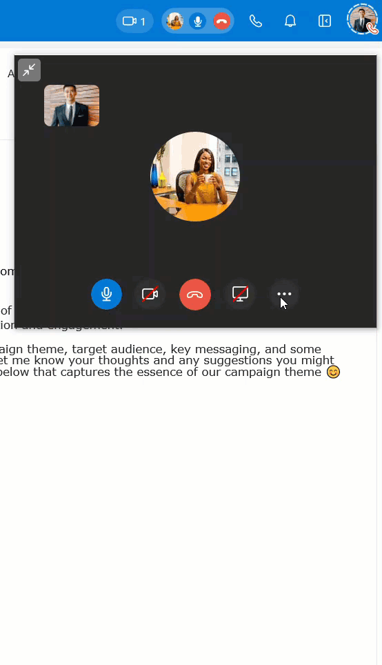 To give you more screen space and focus on other apps while you're on a call, you can shrink or expand the call window size.