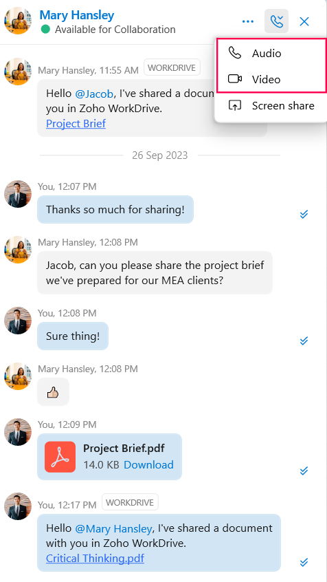 Choose between Audio Call or Video Call.