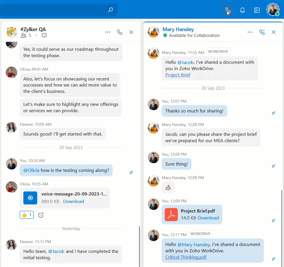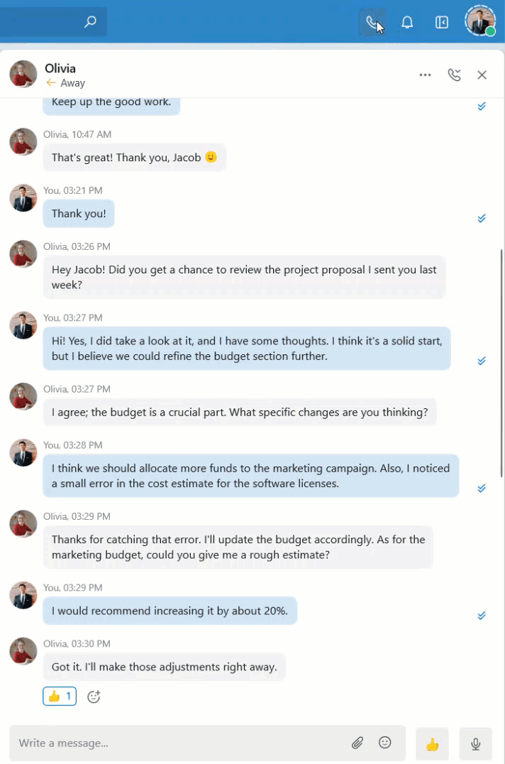 Open the one-on-one chat with your teammate.