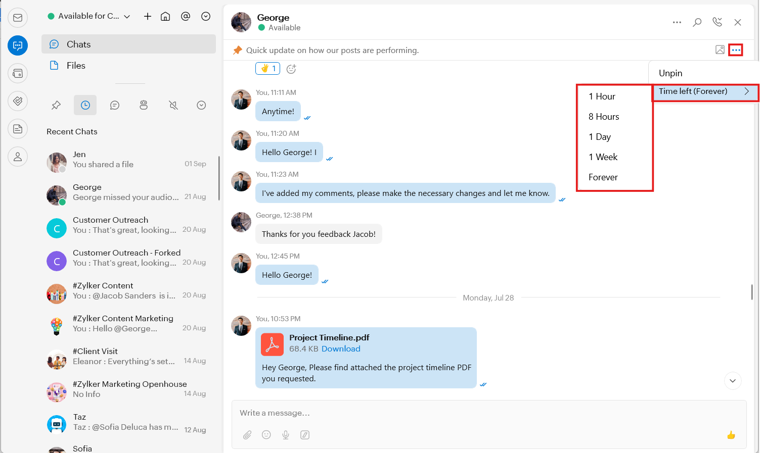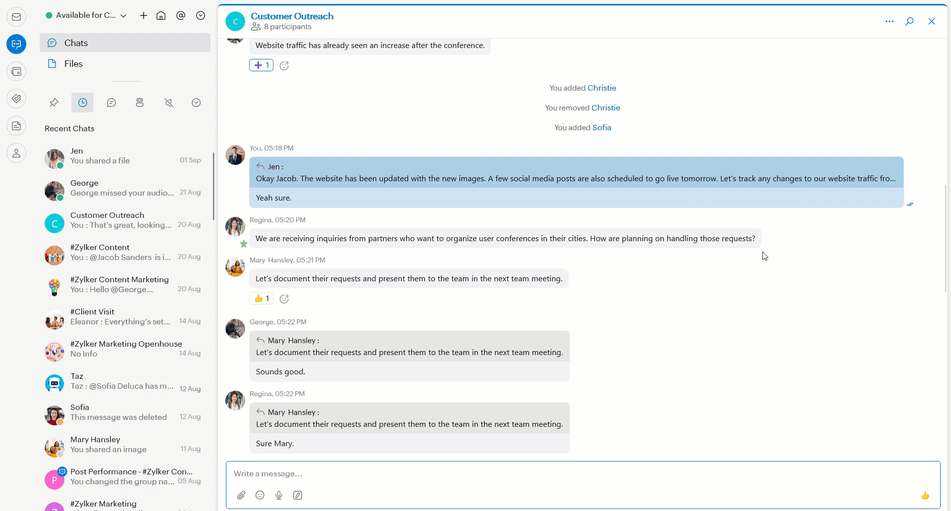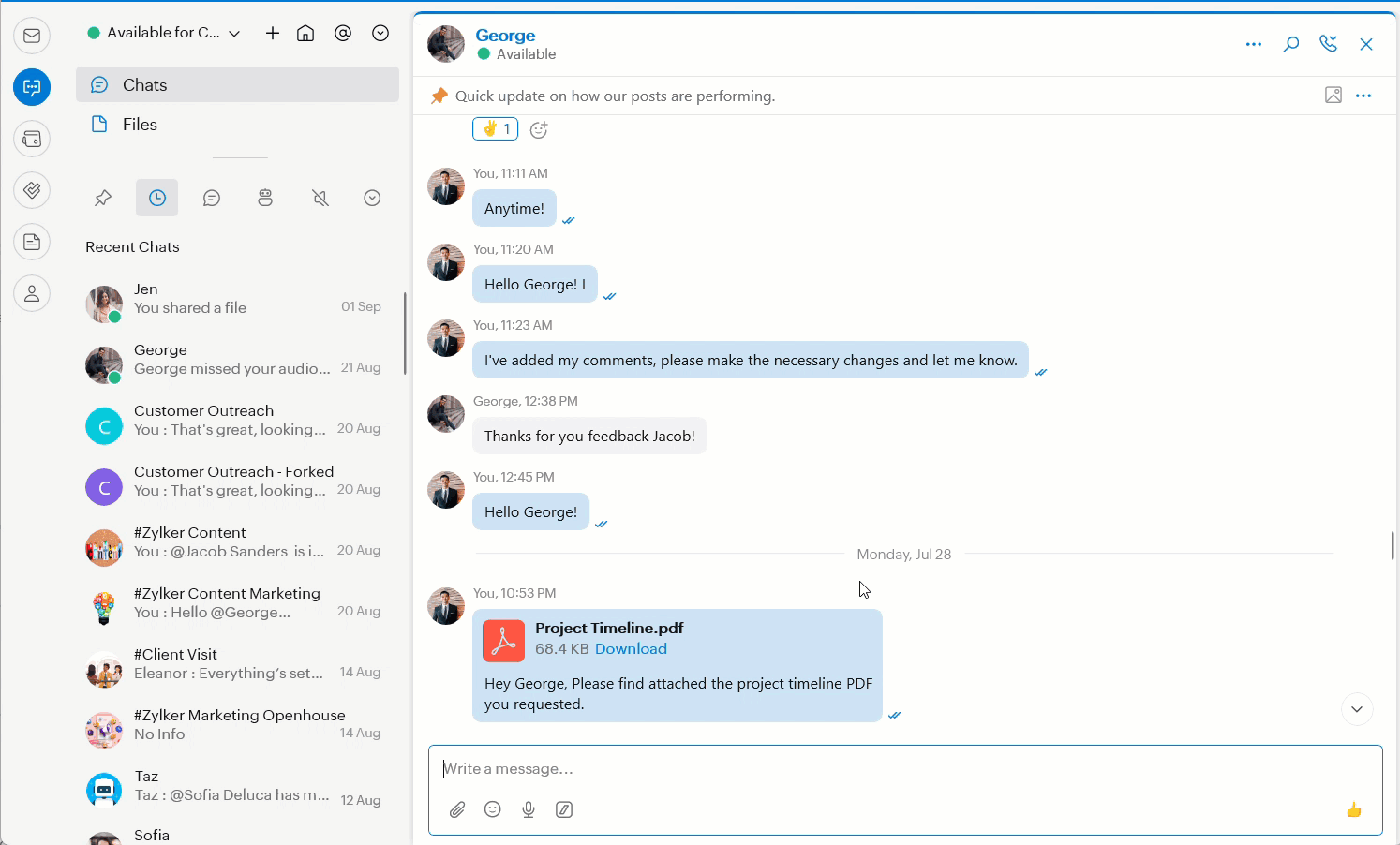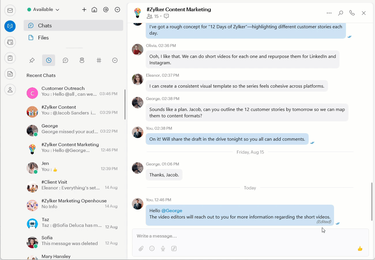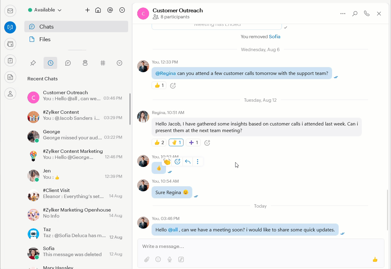 You can reply privately to messages in Cliq channels, threaded conversations, and group chat. To do so: