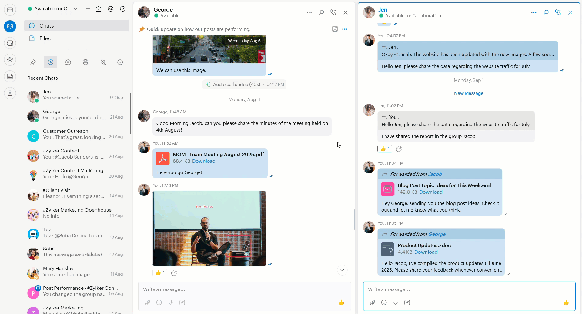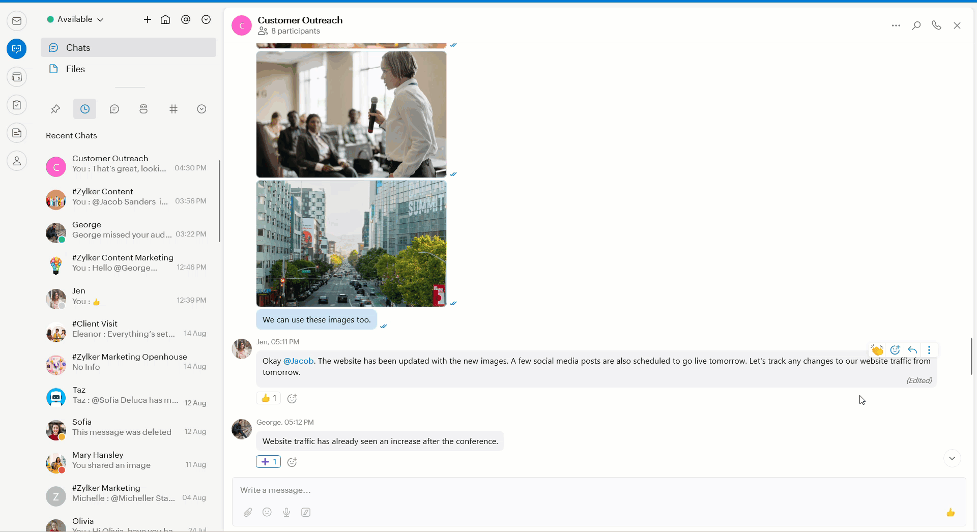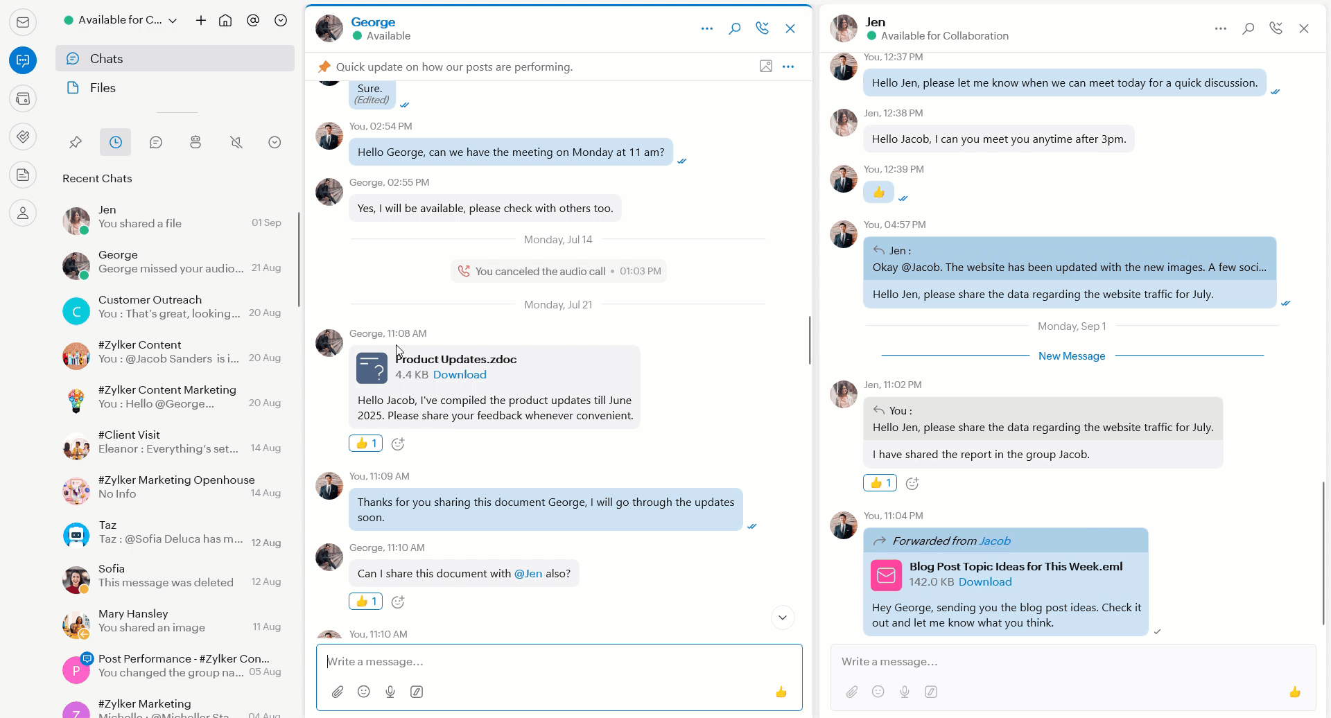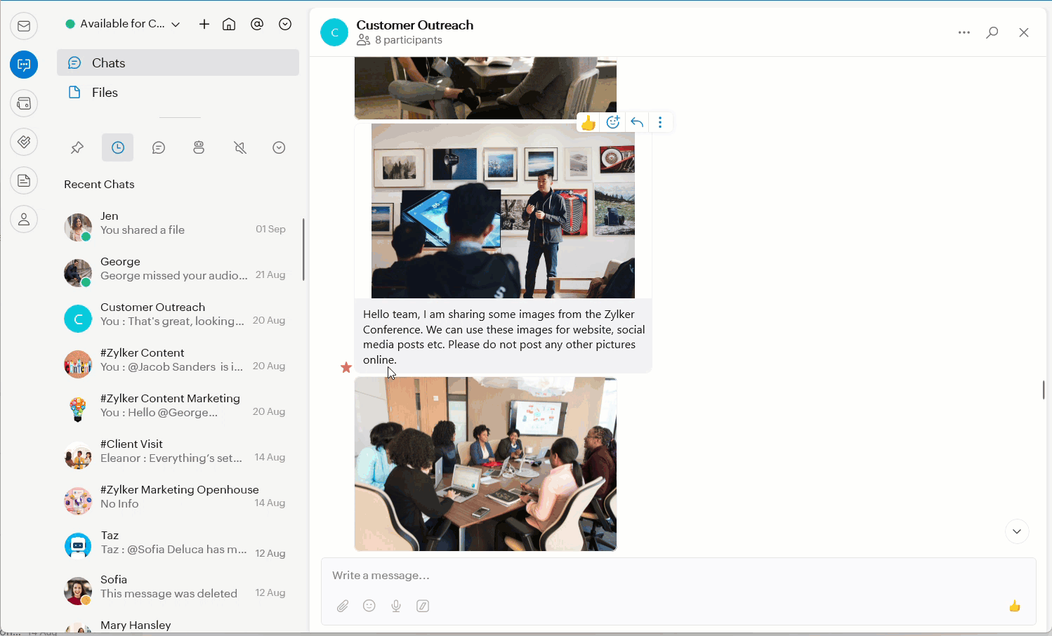 You can reply privately to messages in Cliq channels, threaded conversations, and group chat. To do so: