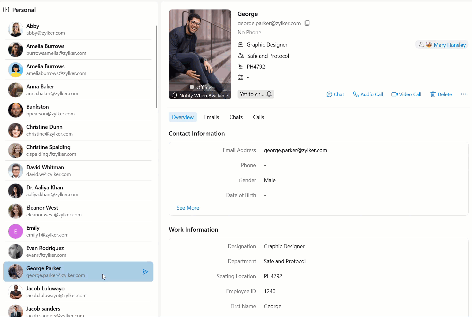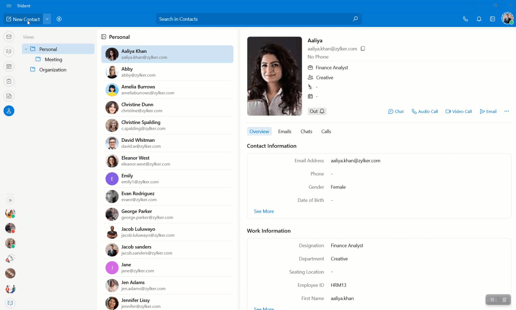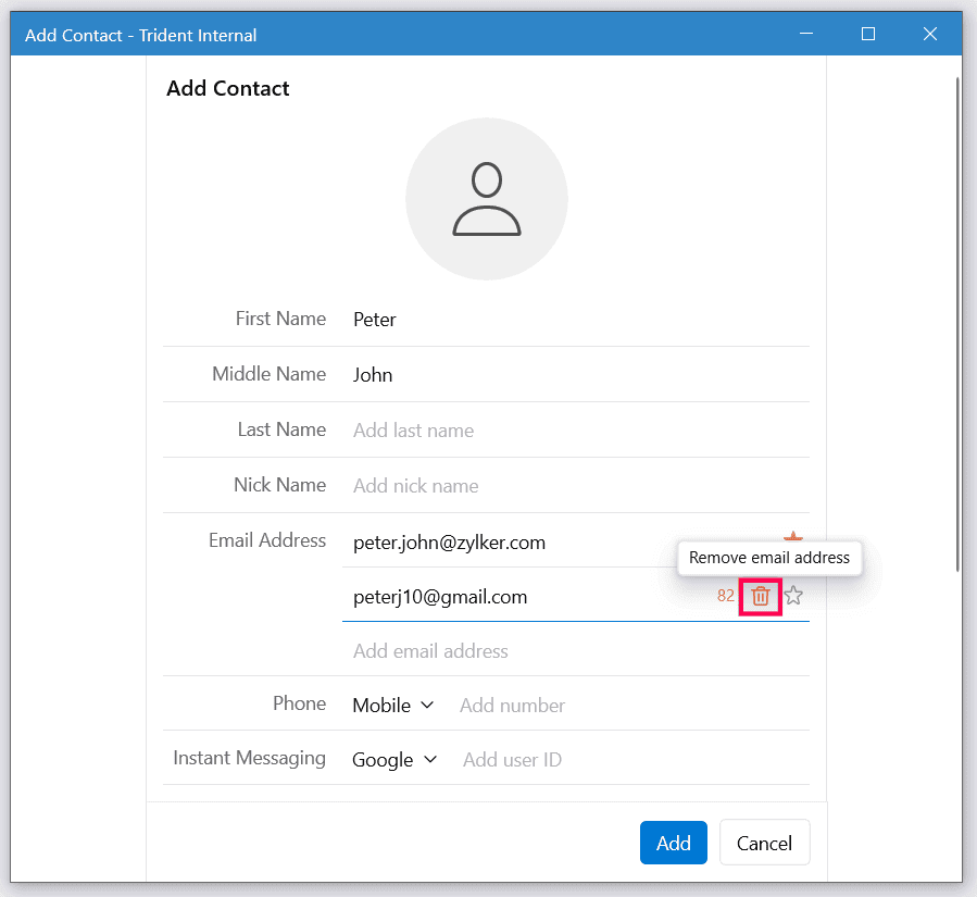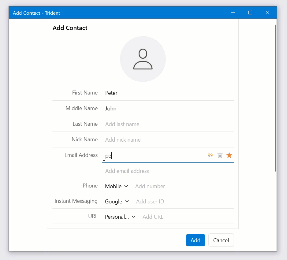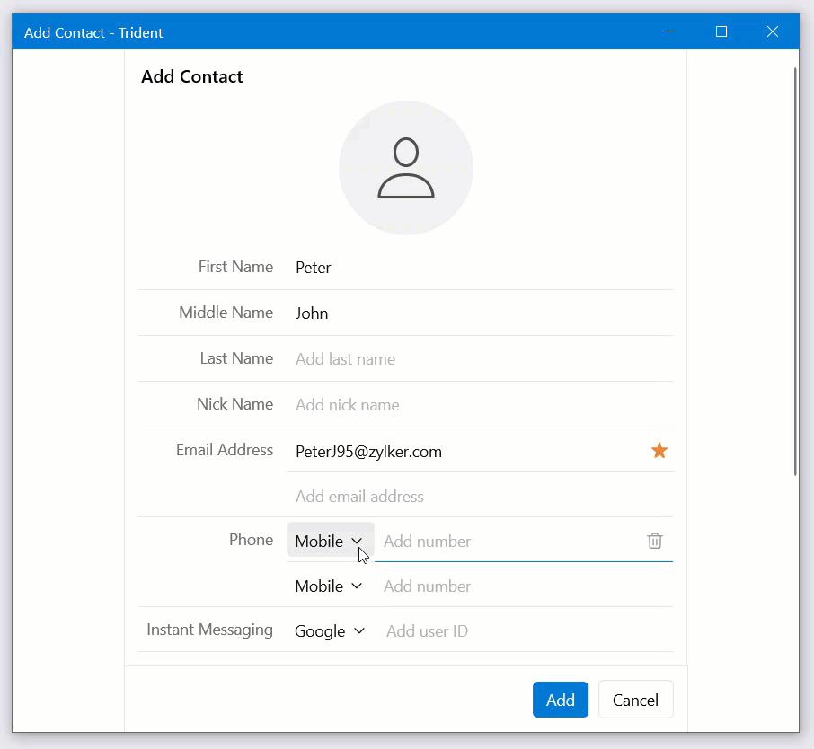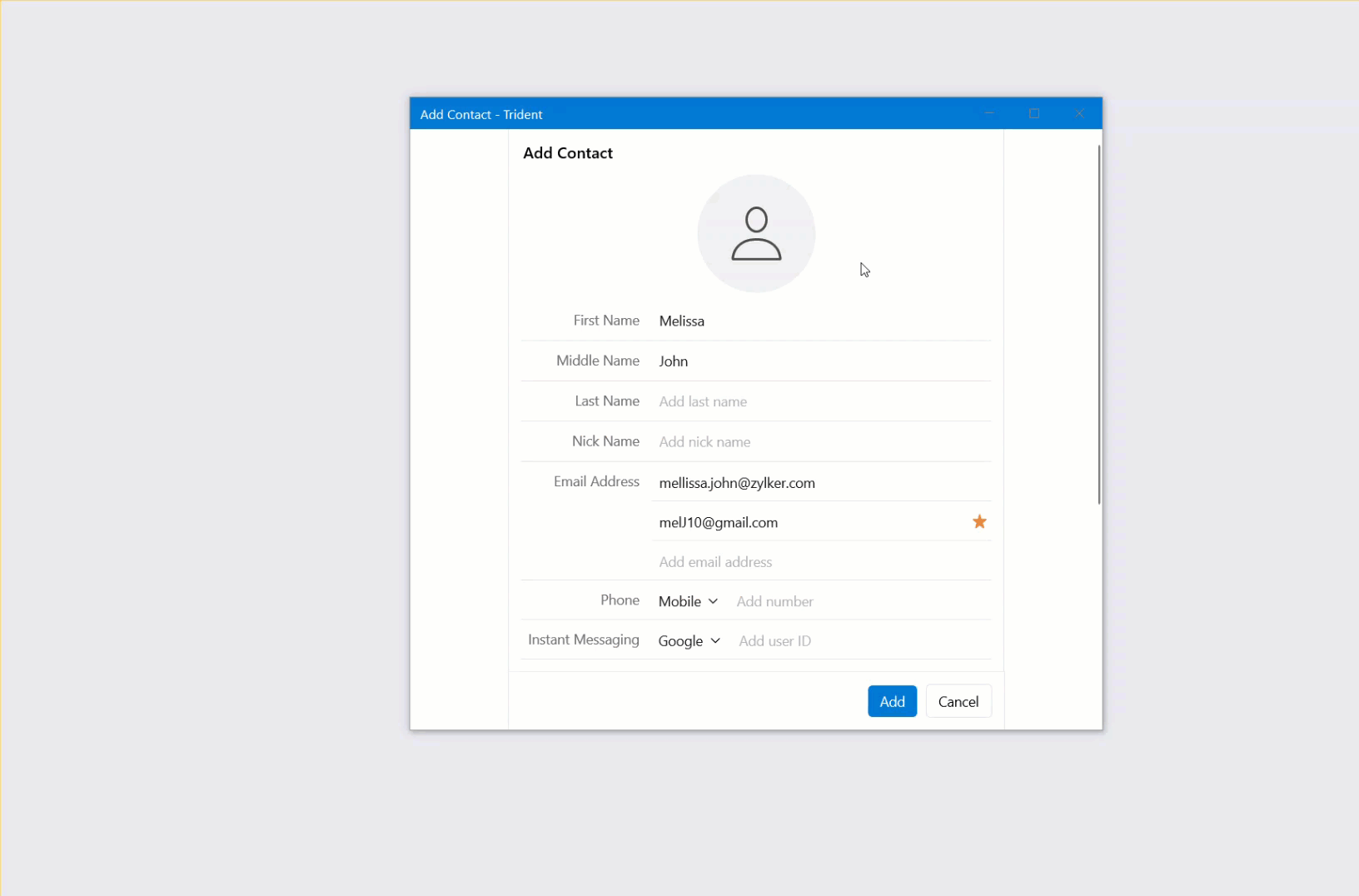 You can use the contact fields to provide comprehensive information for each contact. In the contacts form, you'll find fields for entering details such as first name, last name, email address, and more.
