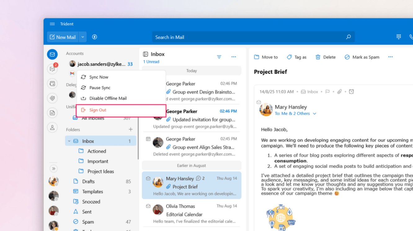 To sign out of Trident: