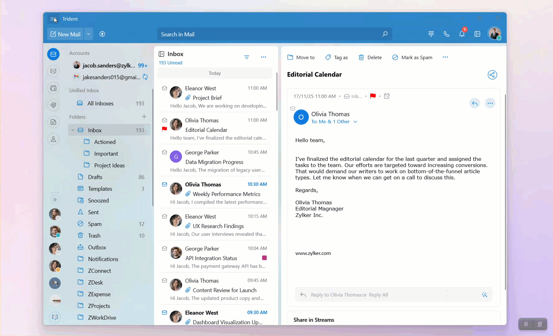 Note: This article explores exporting emails in the Trident desktop app. Click here for the Zoho Mail web app's help documentation.To export emails: