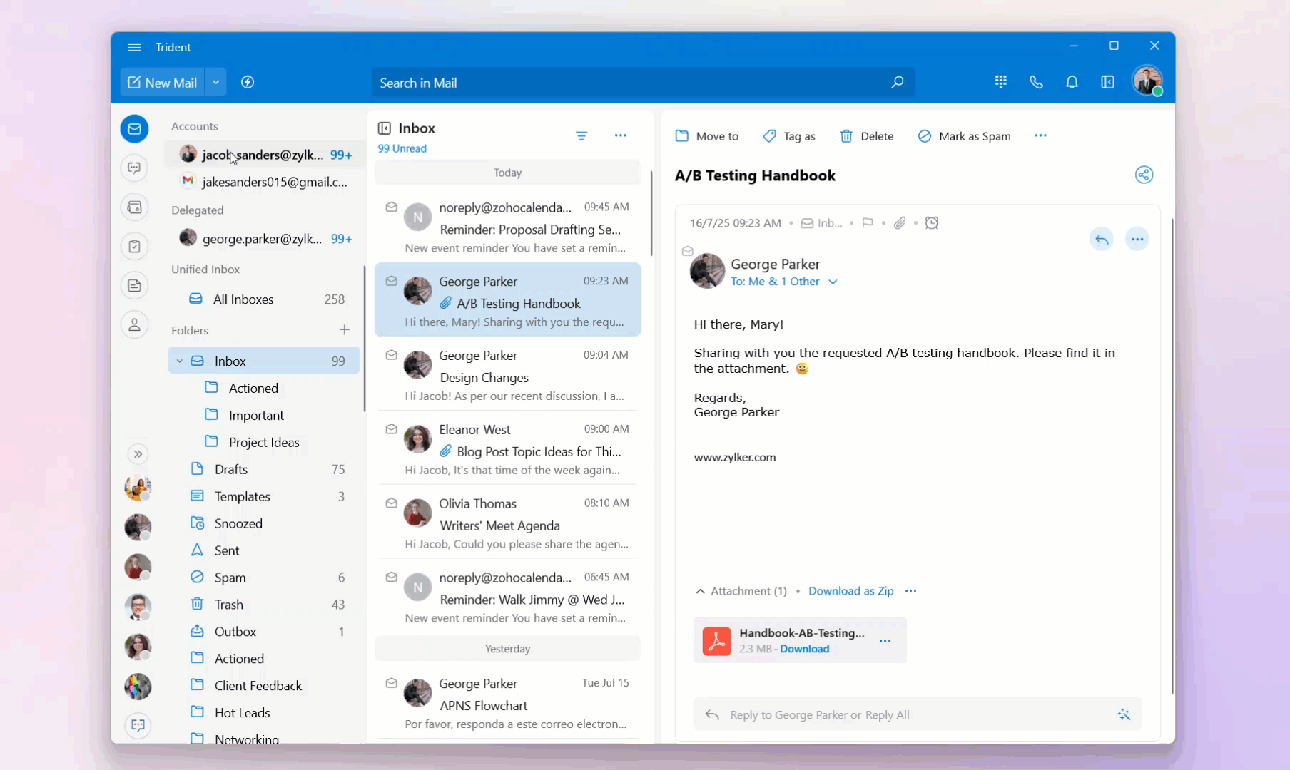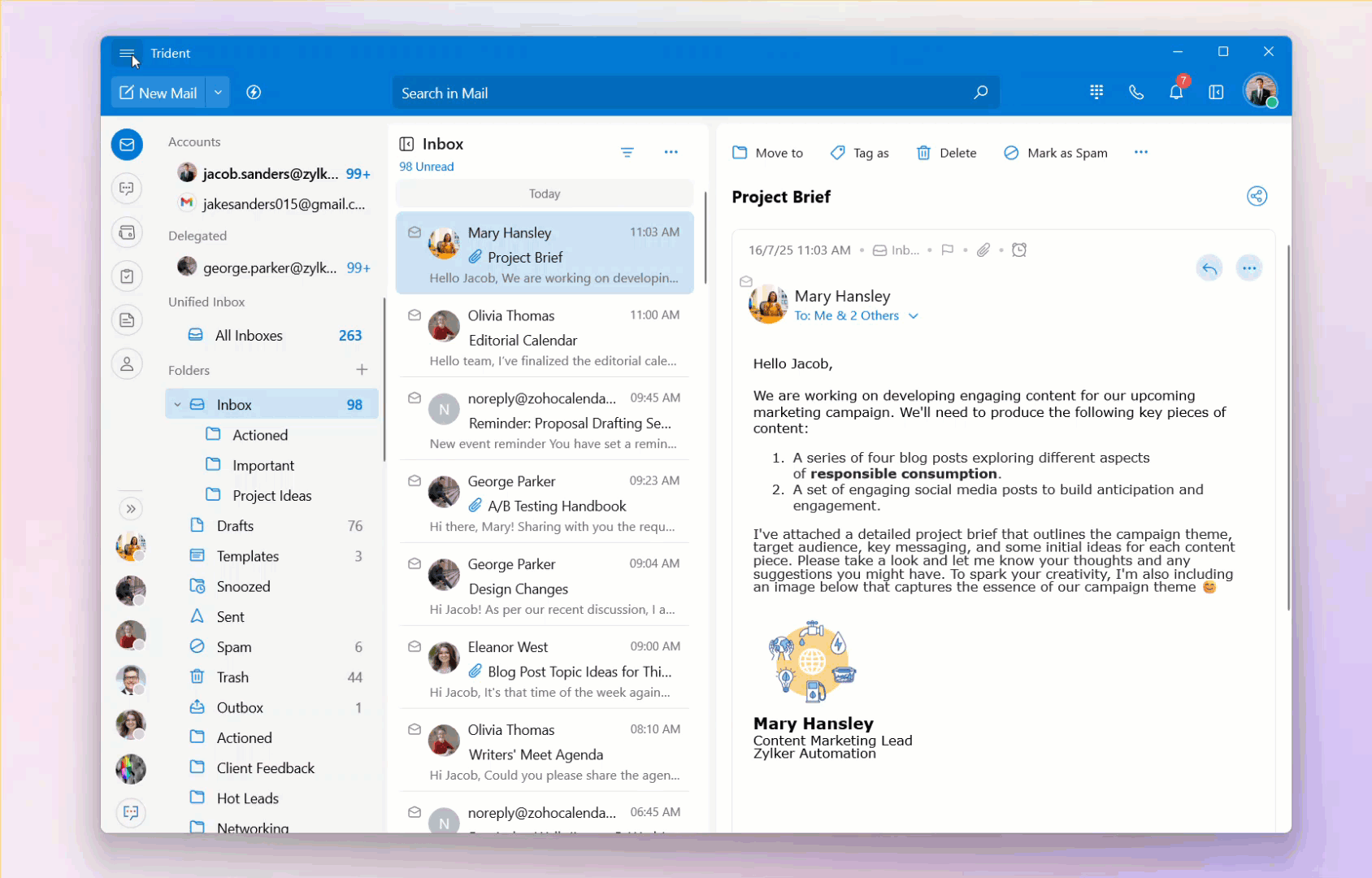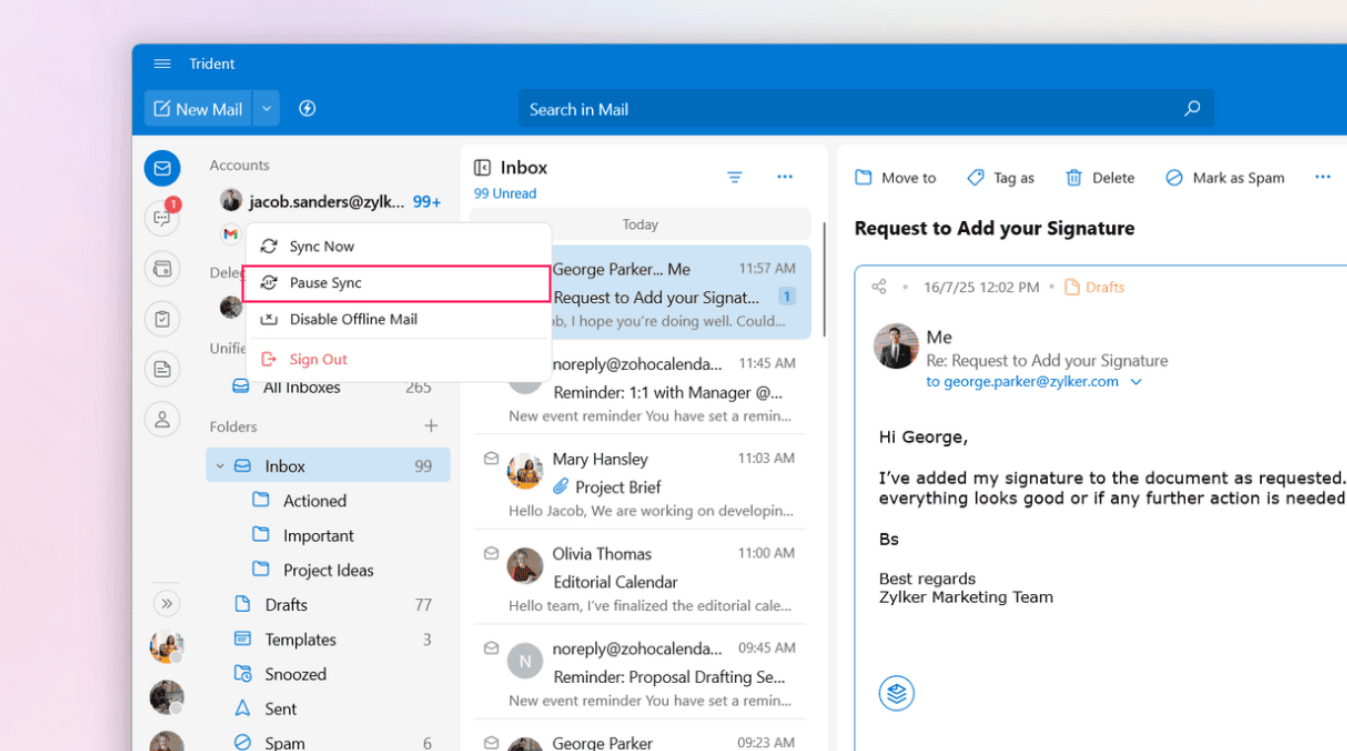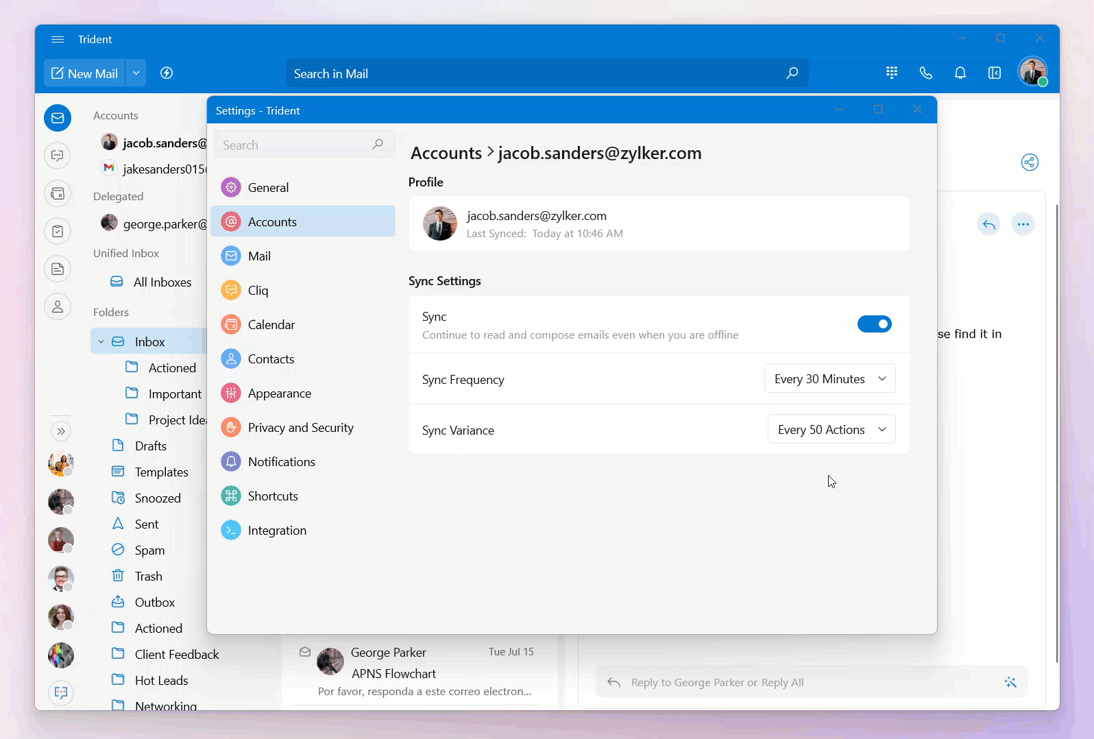 Sync Frequency: The time interval at which Trident syncs Mail offline.