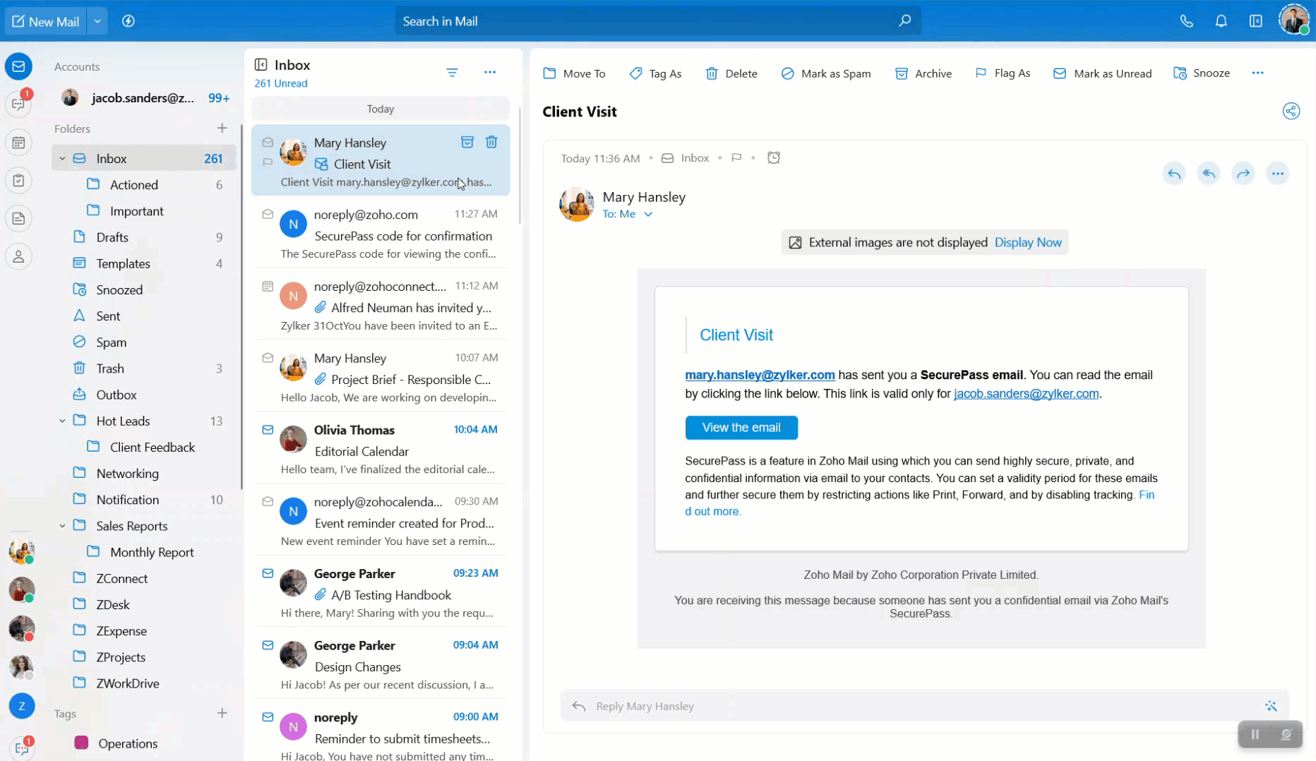 SecurePass emails will be denoted with a lock icon beside the email.