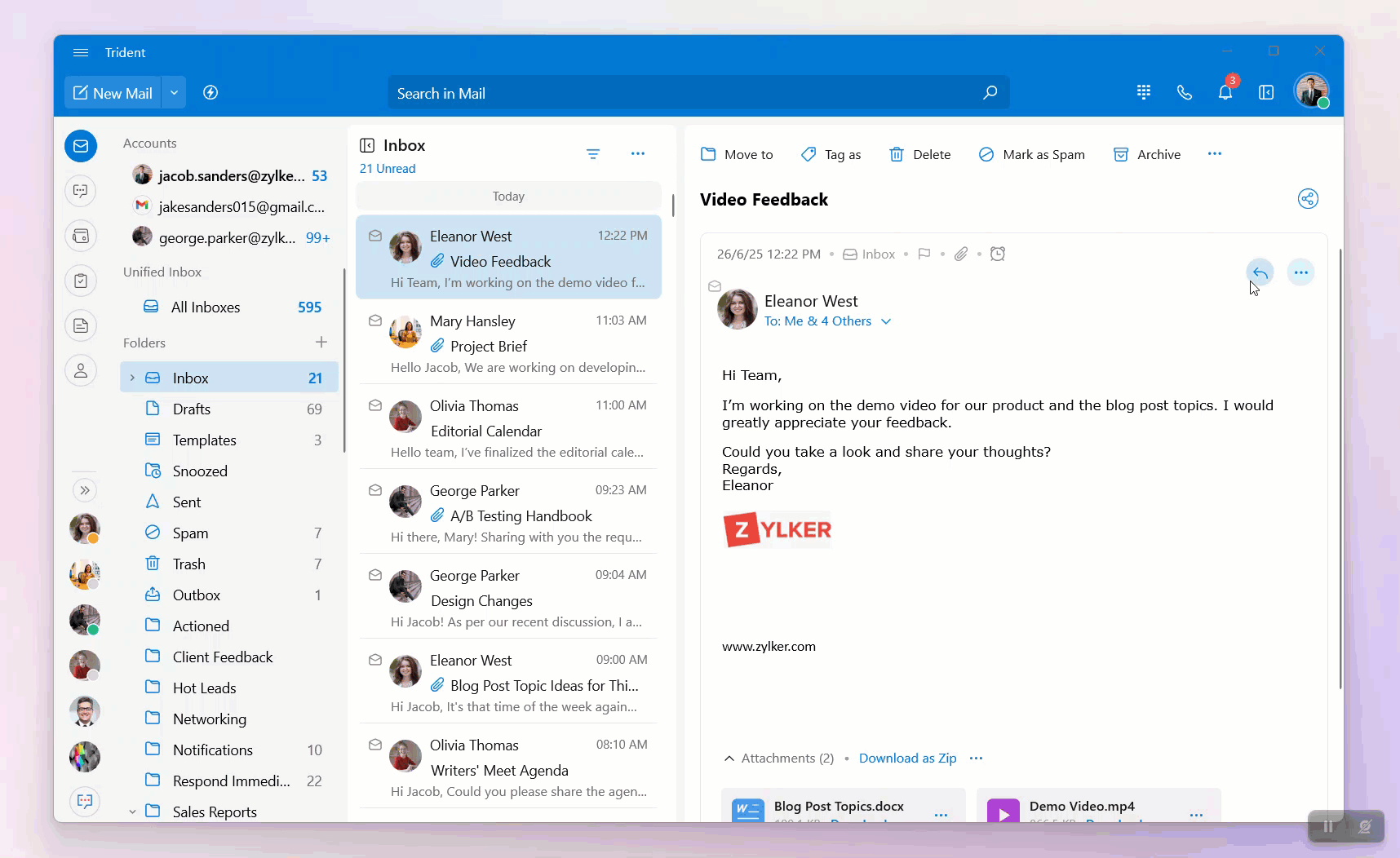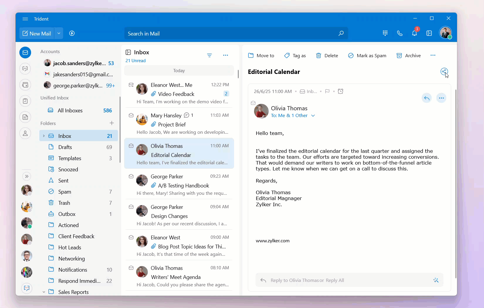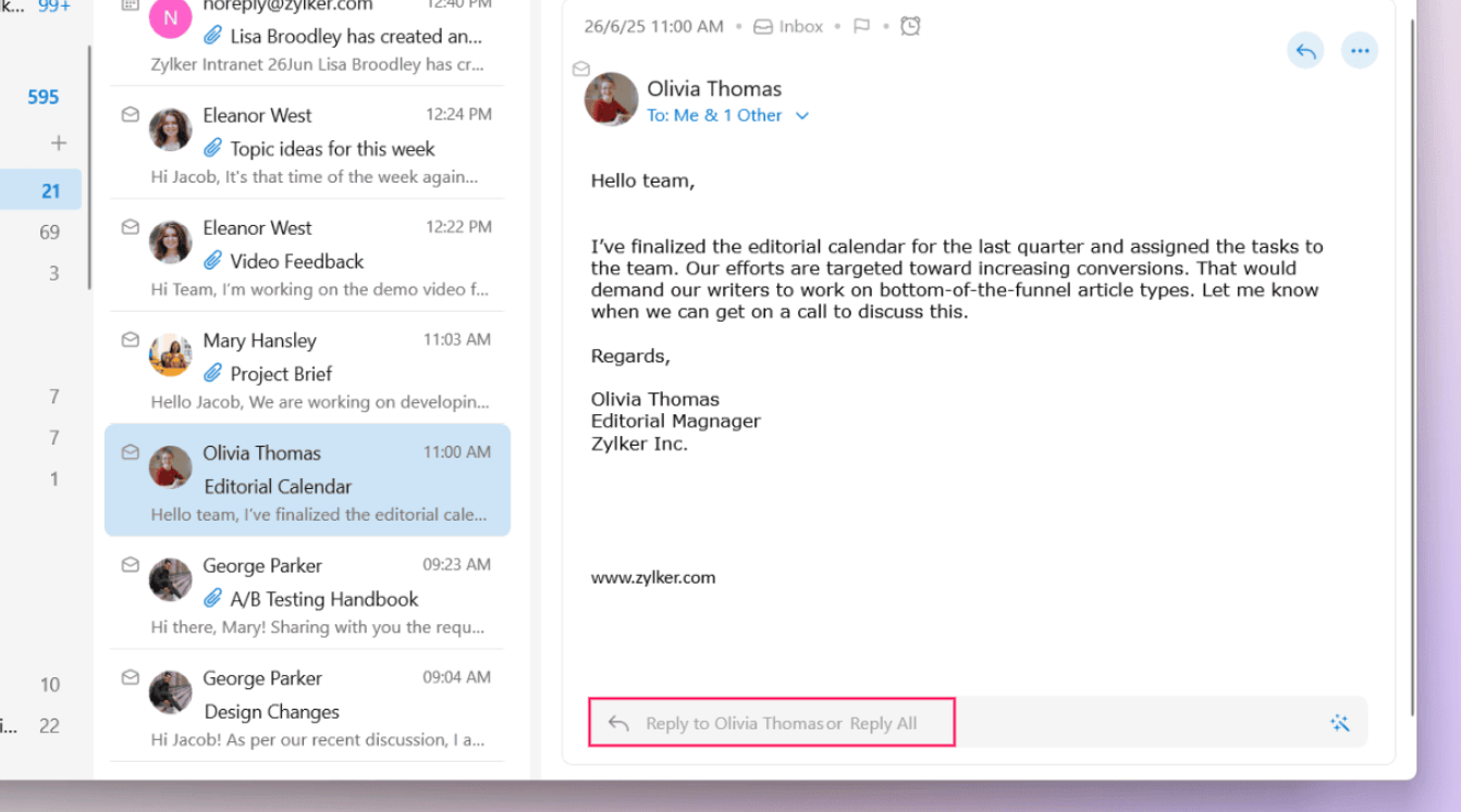By sharing emails, you can easily handle email-related discussions and receive input from co-workers in the form of comments, avoiding multiple forwards and replies.