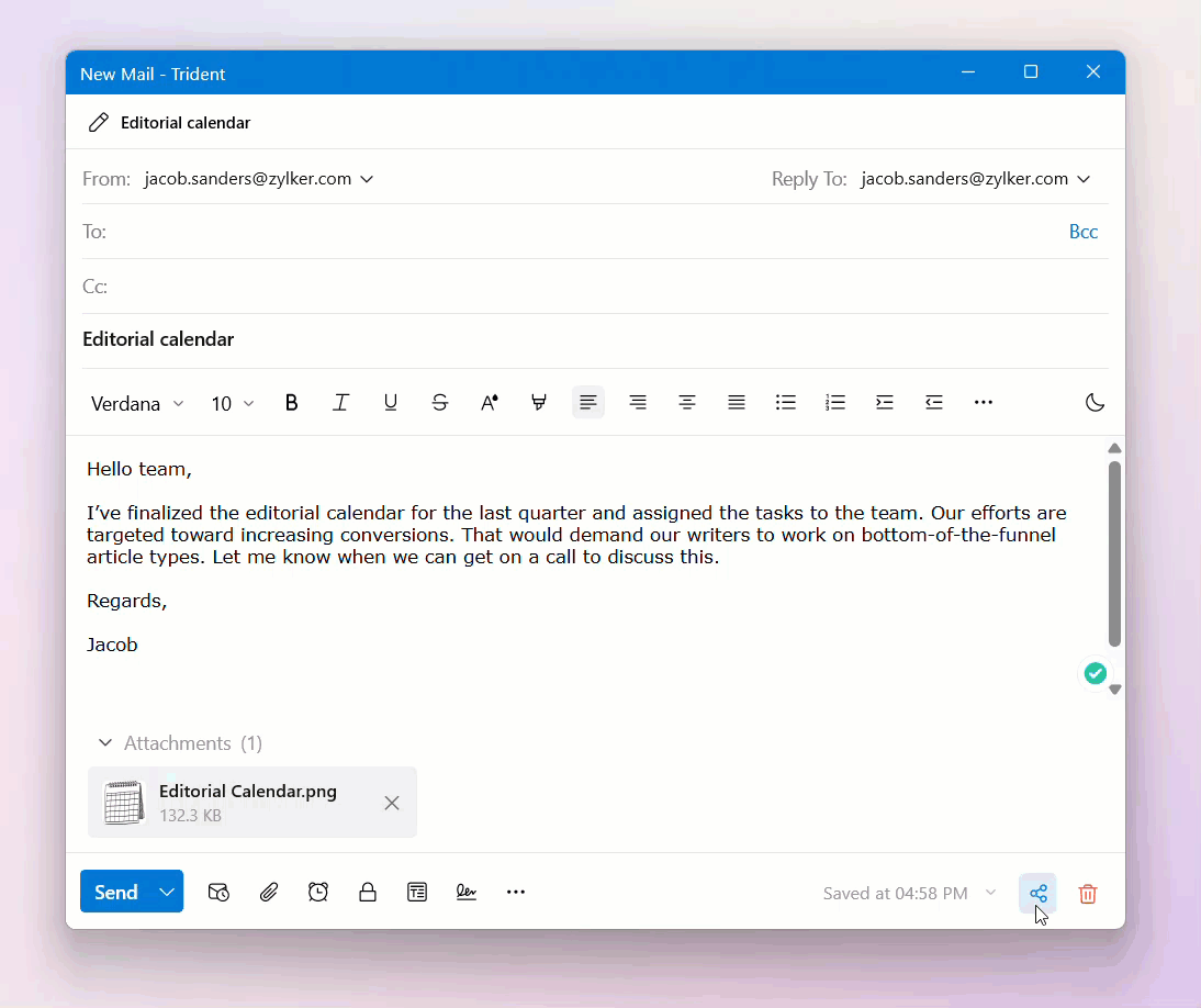 By sharing drafts, you can review your email content with your co-workers, get their feedback, and make modifications to your email before sending it out.