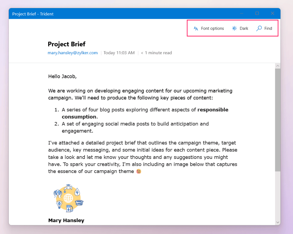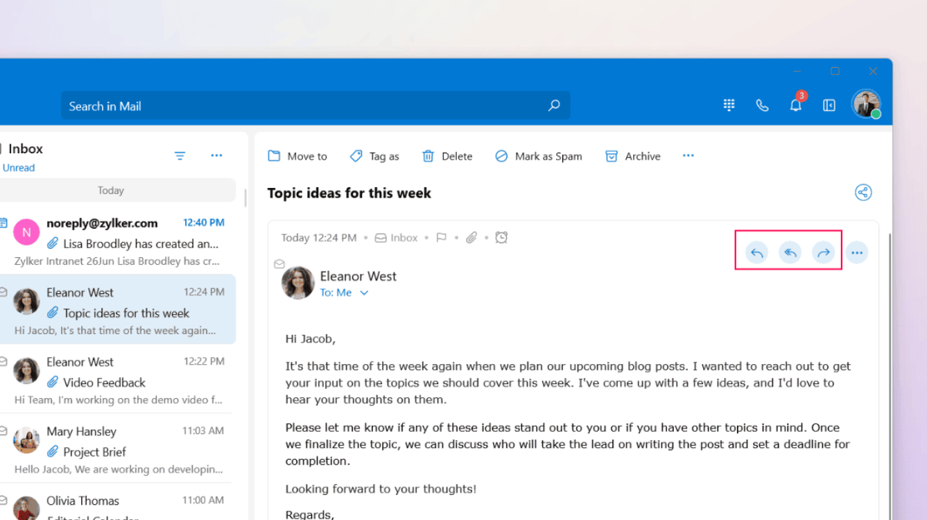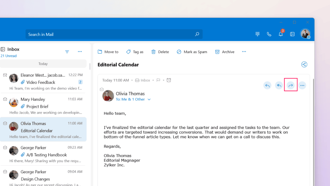 You can get an immersive email reading experience using the Reader View option. This will hide all email management options and present you with only the email content.