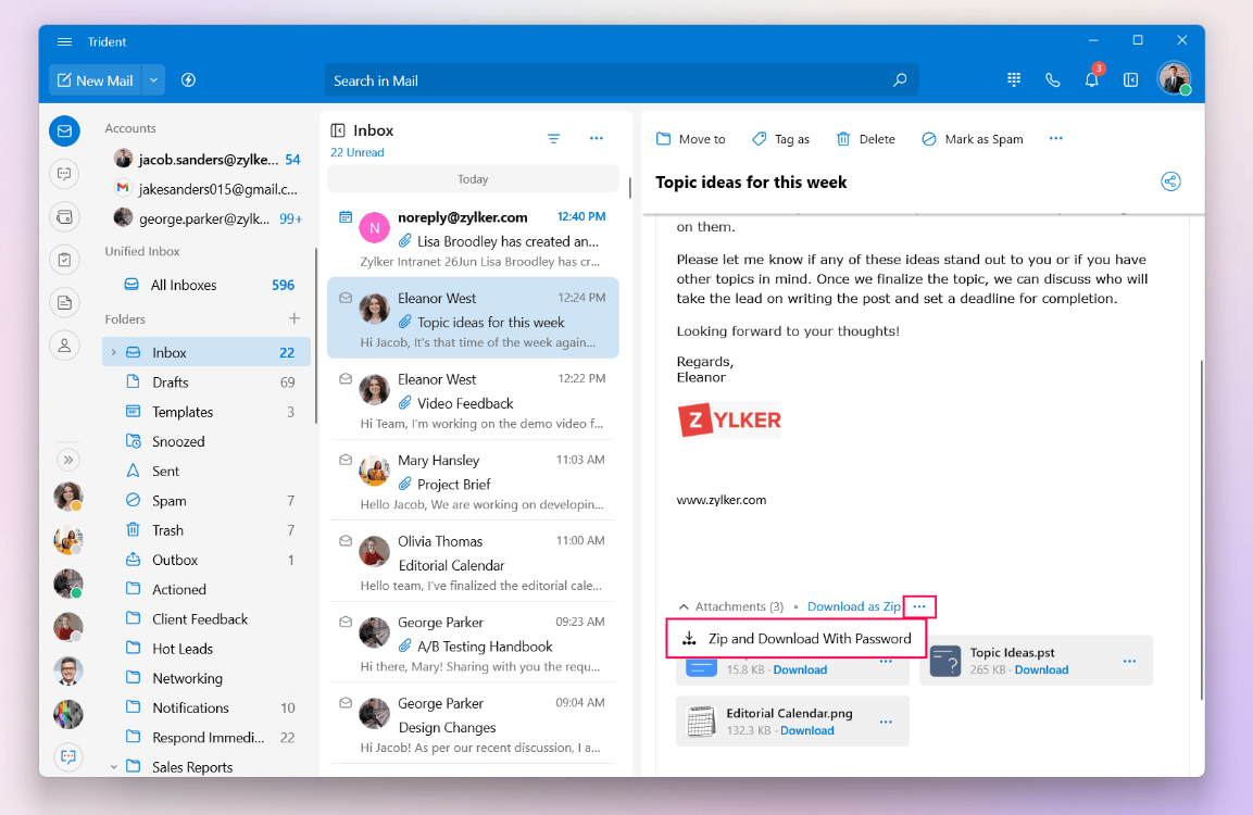 To download multiple attachments with a password: