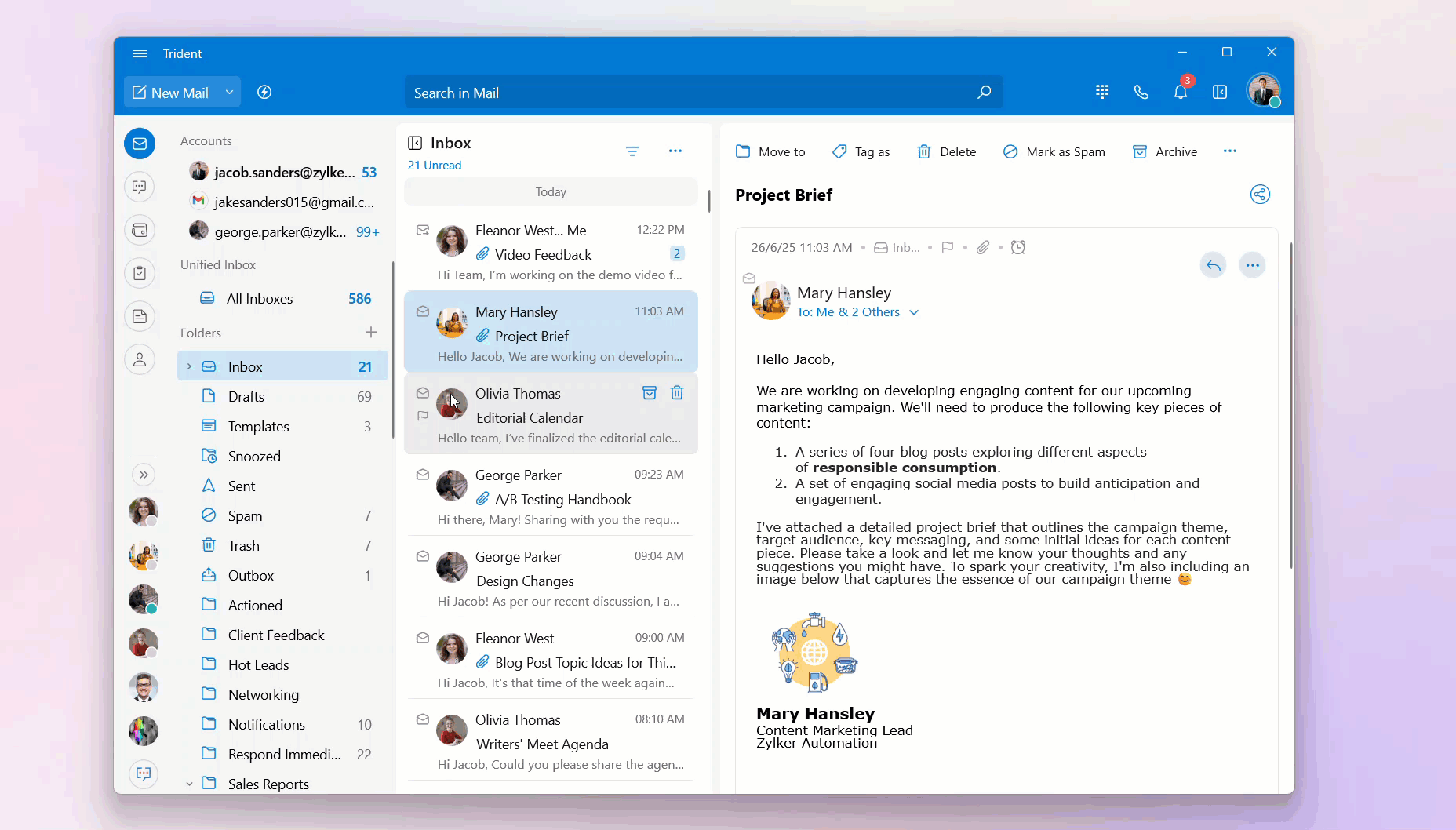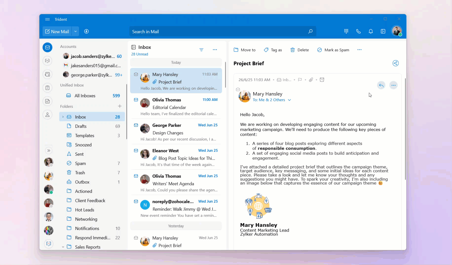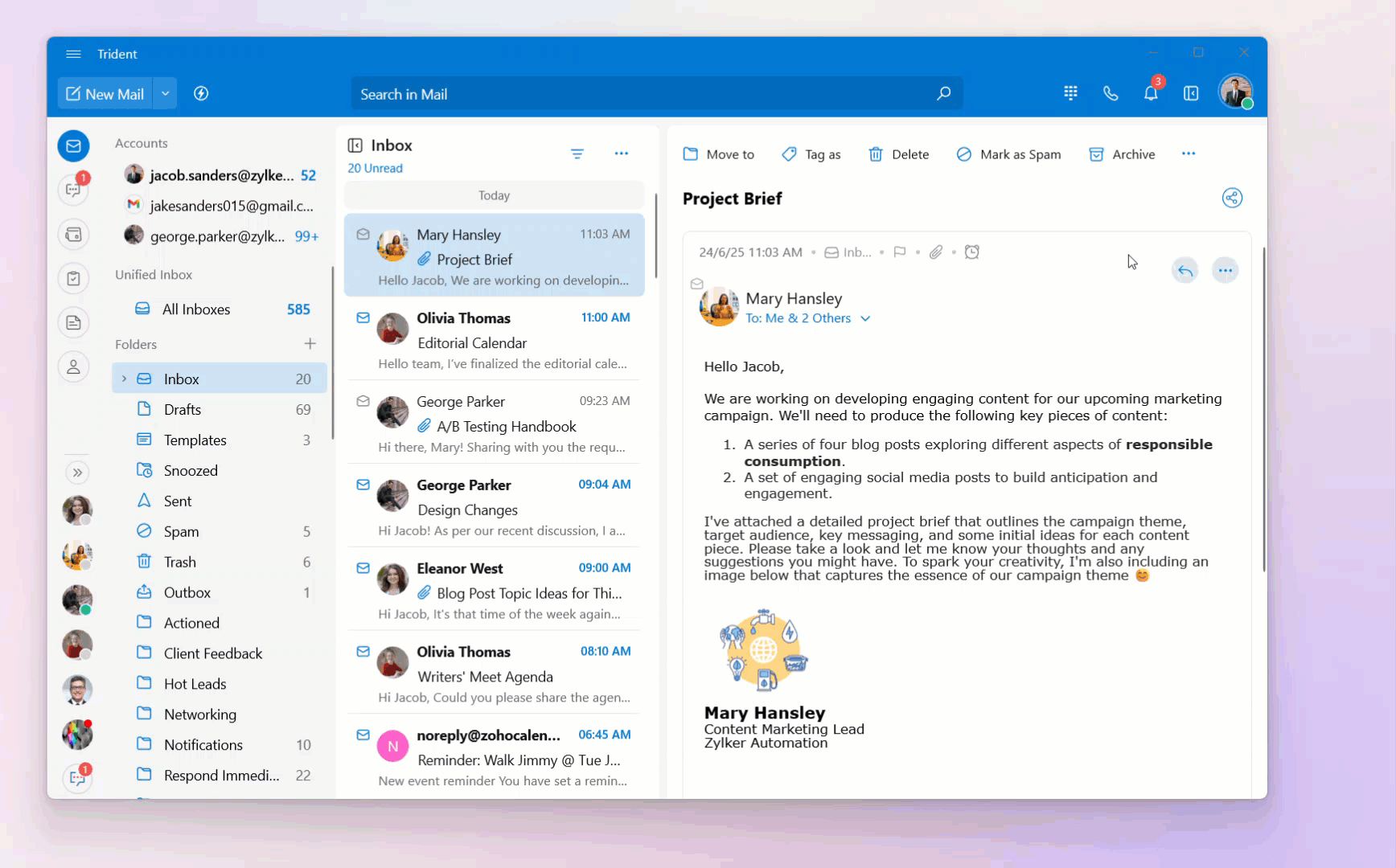 To view all of the email conversations from a specific sender: