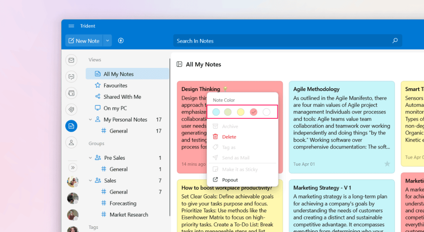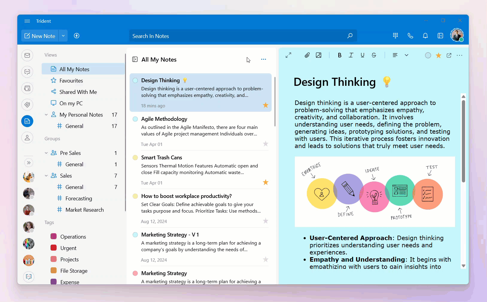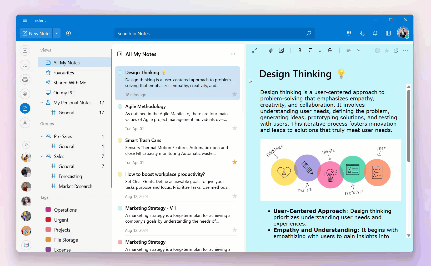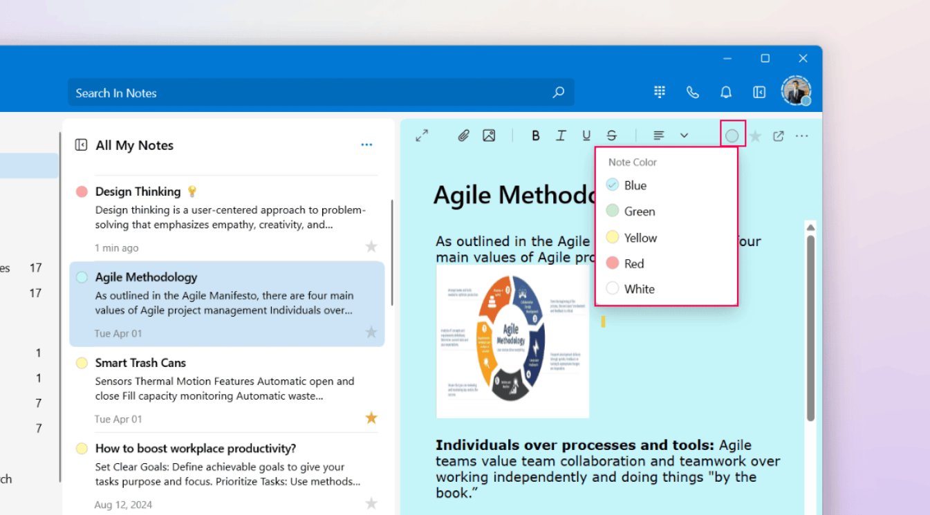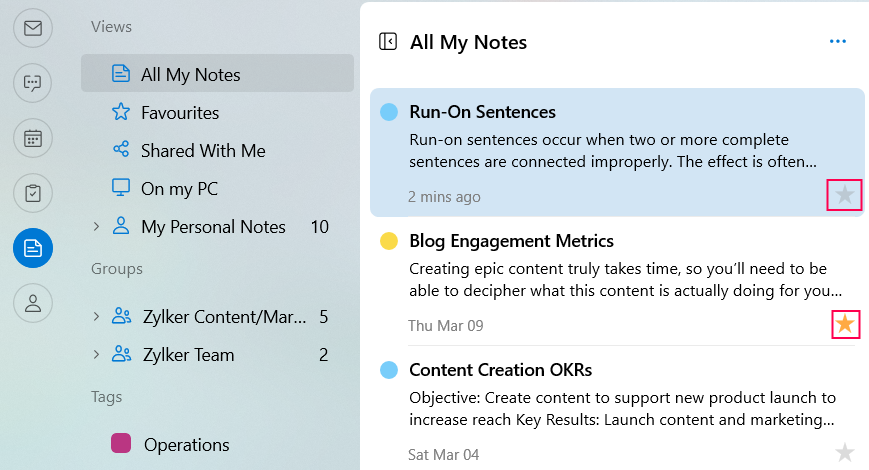 Note: Besides these, the rich text editor also allows you to insert images and attachments. You can preview, download, and delete your note attachments.To identify and access the note you are looking for quickly, you can color code, star, and tag your notes.