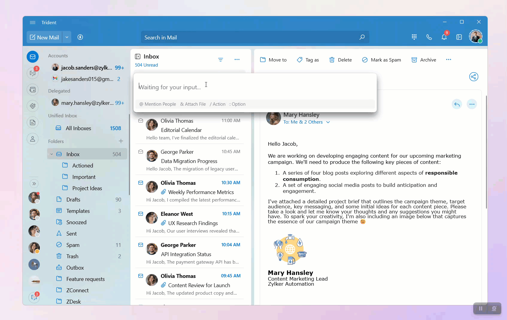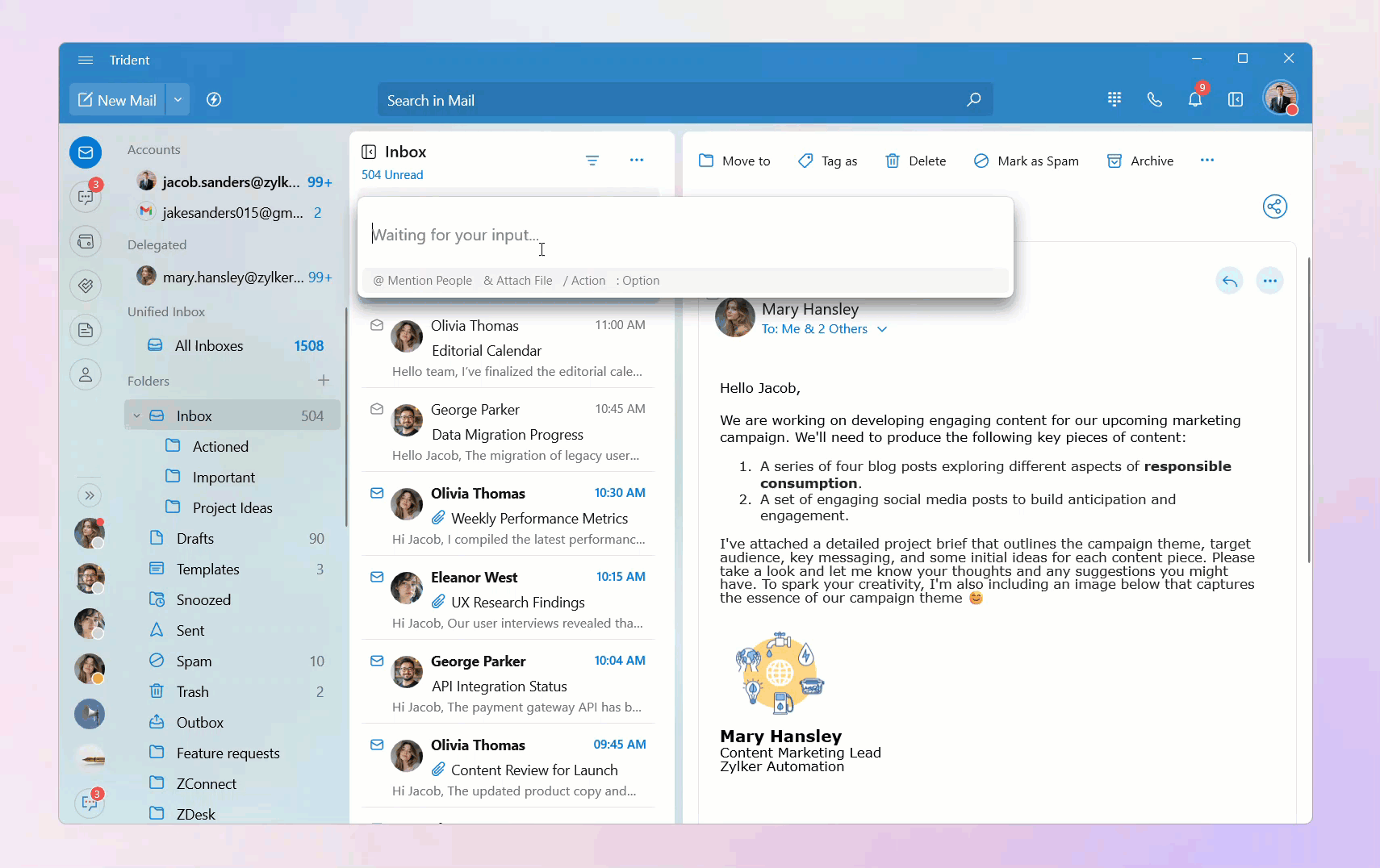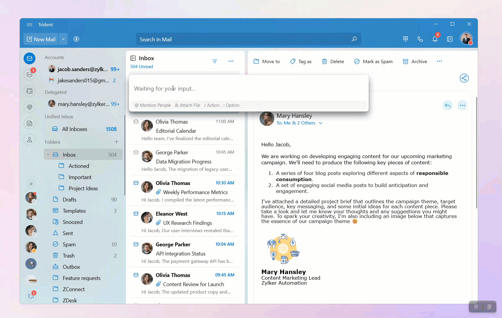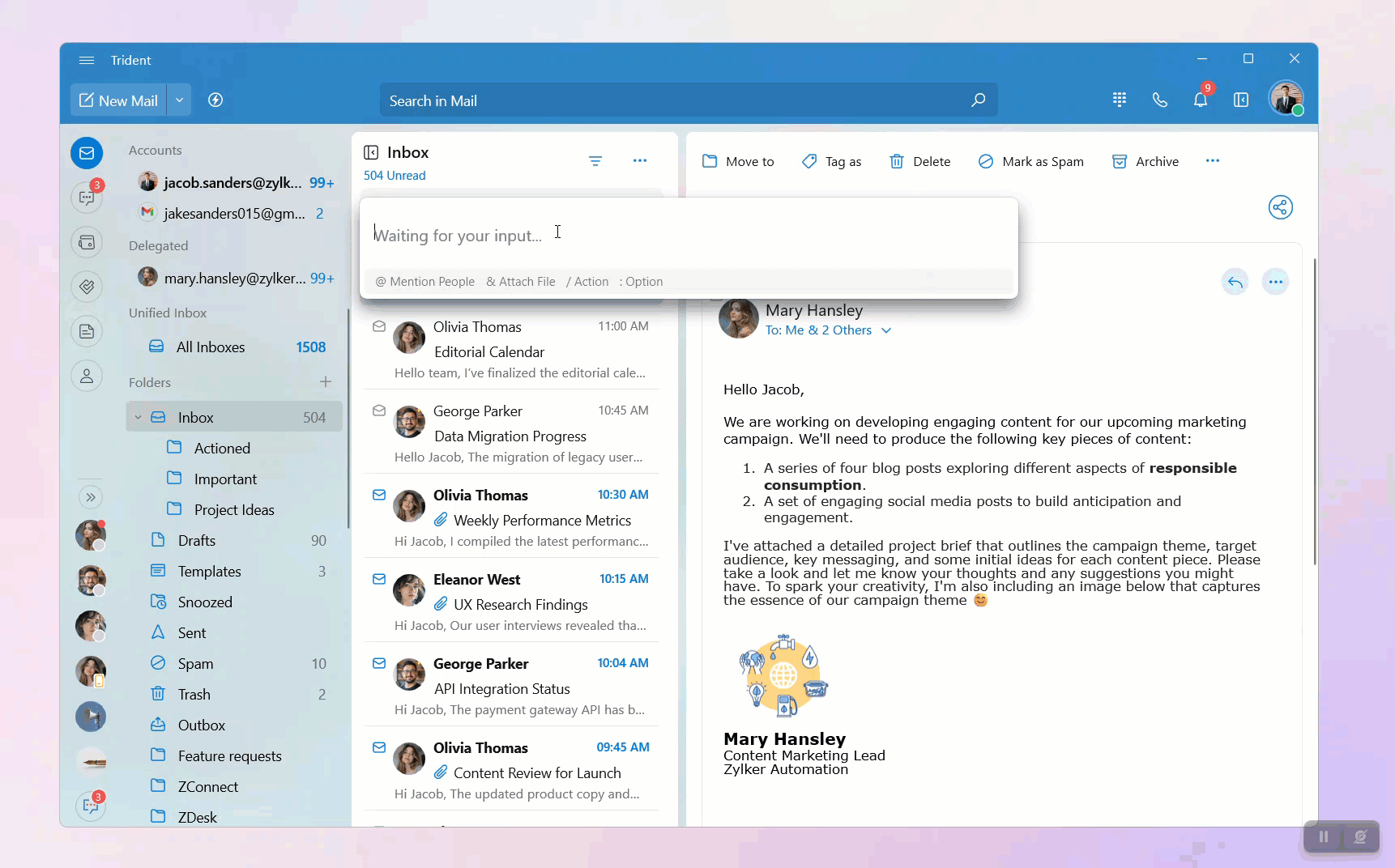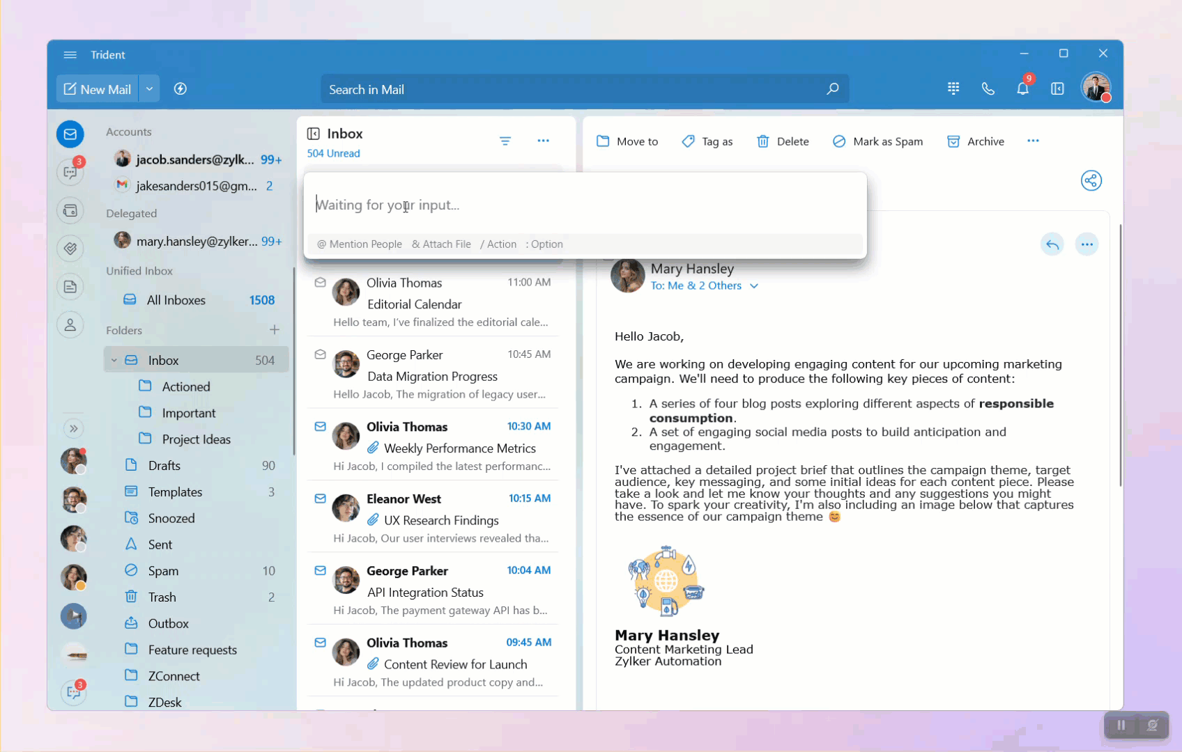 To add an attachment to the note, type "&", then browse for and select the file from your system or Trident.