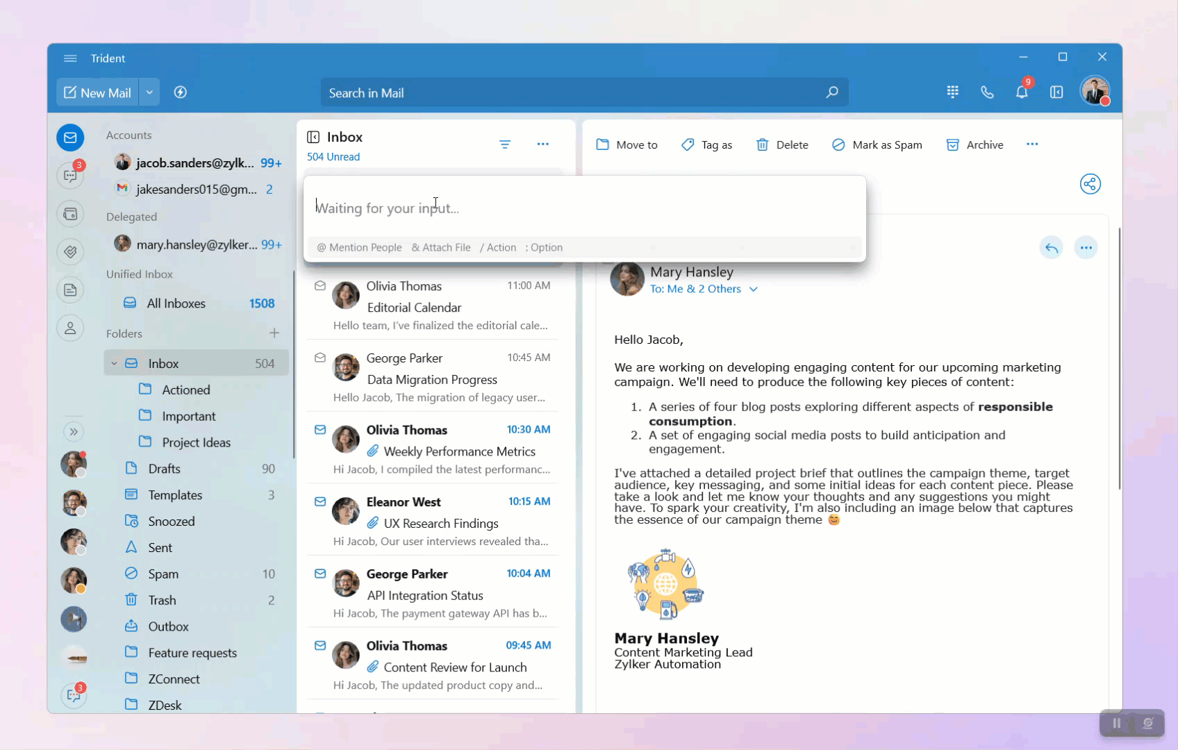 To add an attachment to the feedback email, type "&", then browse for and select the file from your system or Trident.
