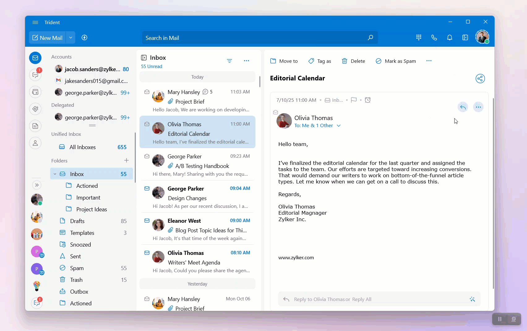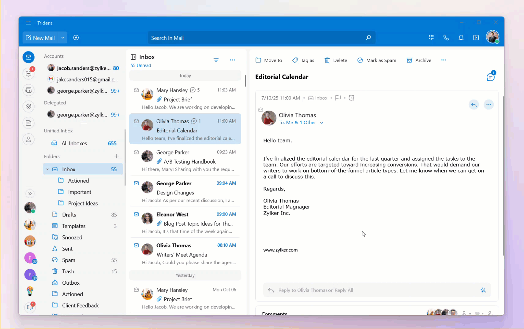 Alternatively, if Streams Comments is disabled as a popover, you'll find it below the email detail view. You can follow the same procedure from step three to share the email.