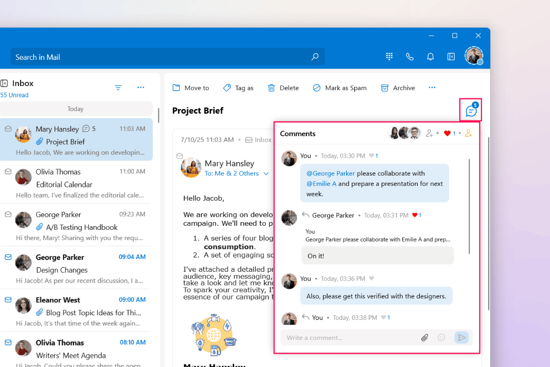 You can decide how you want to access the Streams comment box in the email detail view: As a popover or a component under the email. To enable the Streams comments as a popover, navigate to Main Menu > Settings > Mail > Mail View Options, toggle the Show Streams Comments in Popover by Default option on.