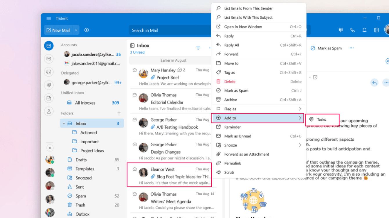 To create a task from email content: