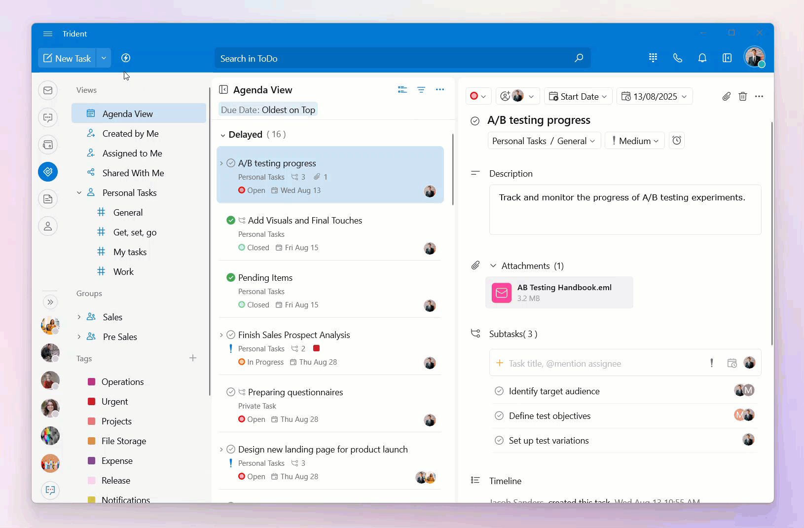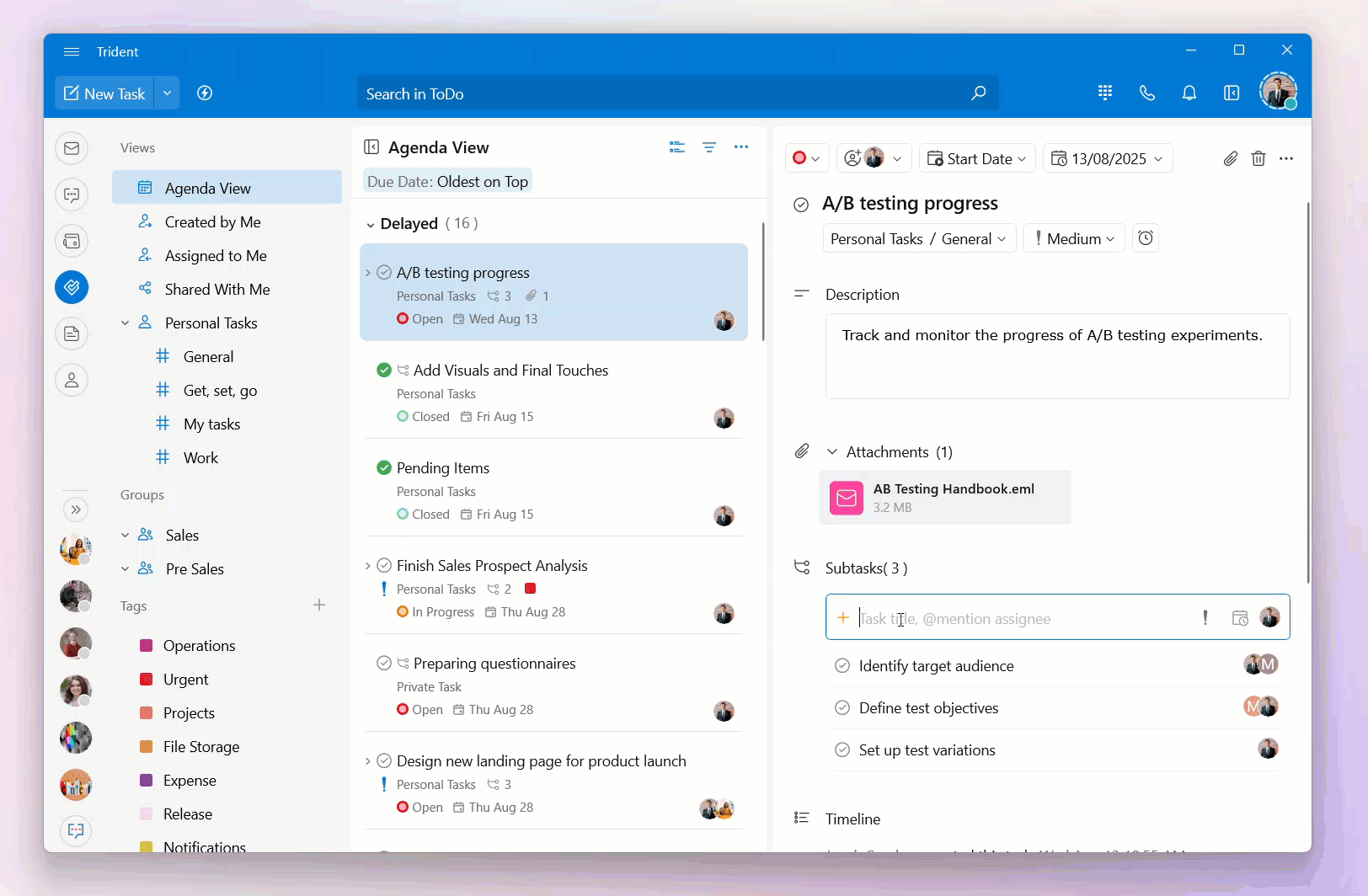 You can use a range of task fields to enhance your task management ensuring clarity for the tasks you create.