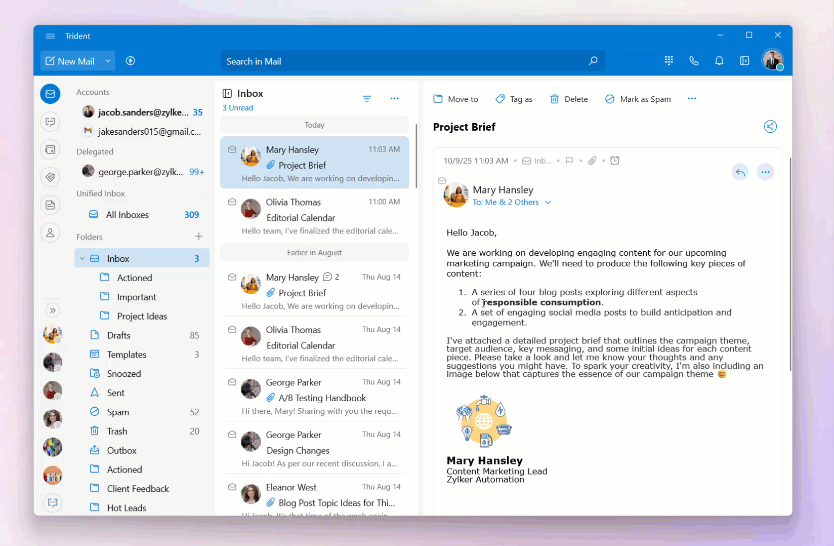 Select some text in the email.