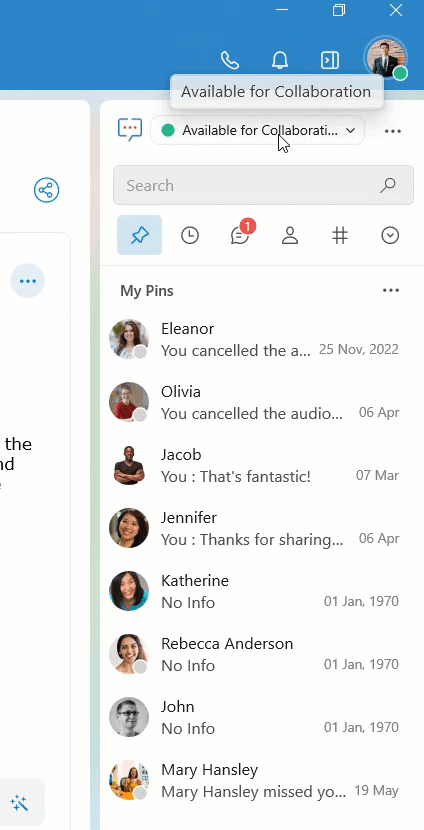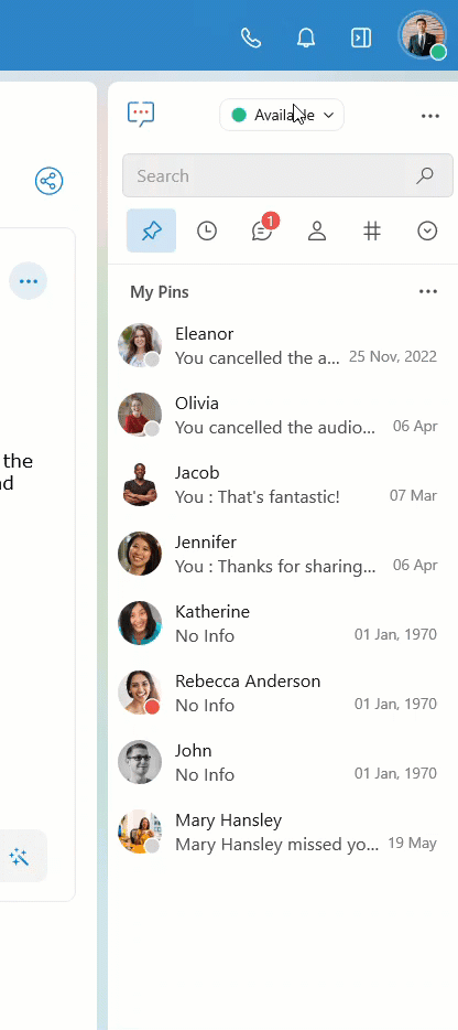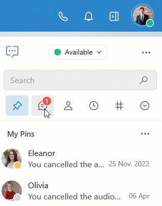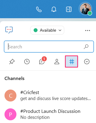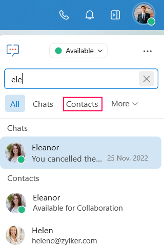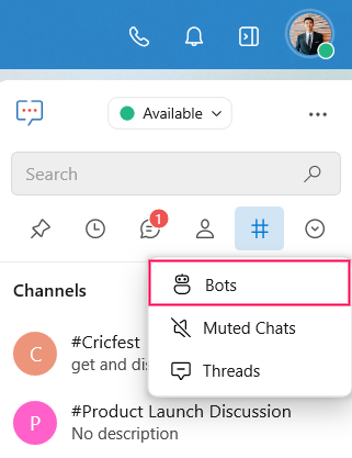 The search bar enables you to find chats, contacts, channels, threads, and messages. You can apply these filters while searching to narrow down the search results.