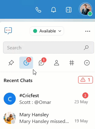 Unsent Chats | Shows the number and list of unsent chats within the Recent Chats tab. | |