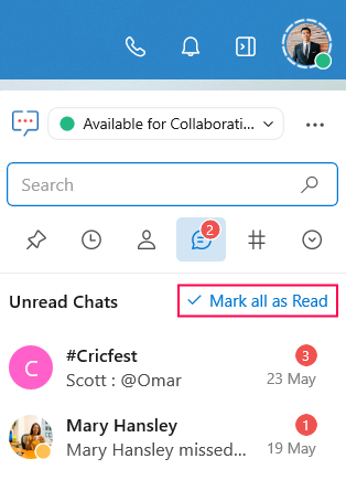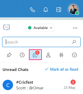 Unread Chats | Lists the chats in which you have unread messages. | |