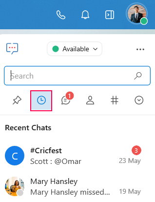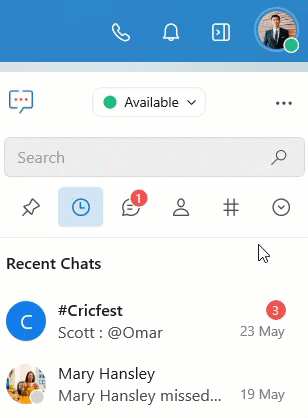 Recent Chats | Lists the chats based on the most recent time of sent or received messages. | |