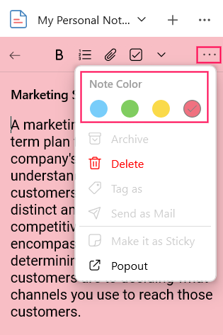 In addition to these categories, you can color-code your notes in yellow, blue, red, or green to separate them by the level of importance, subject matter, and so on, to organize your notes effectively. To do so:
