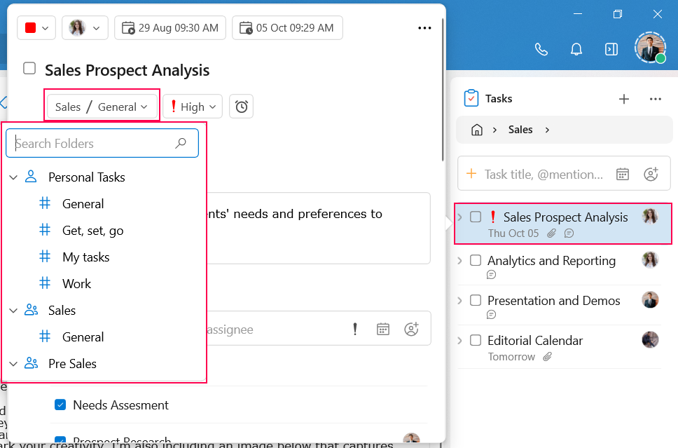 In the Add Task window, give the task a title, allot an assignee, and assign the task category.