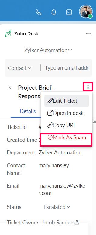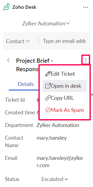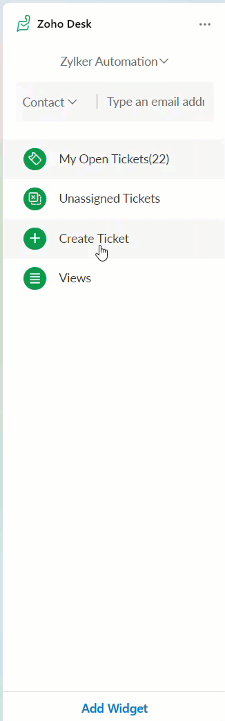 Click Create Ticket. The form fields will get pre-filled automatically by fetching the details from the email you're viewing.