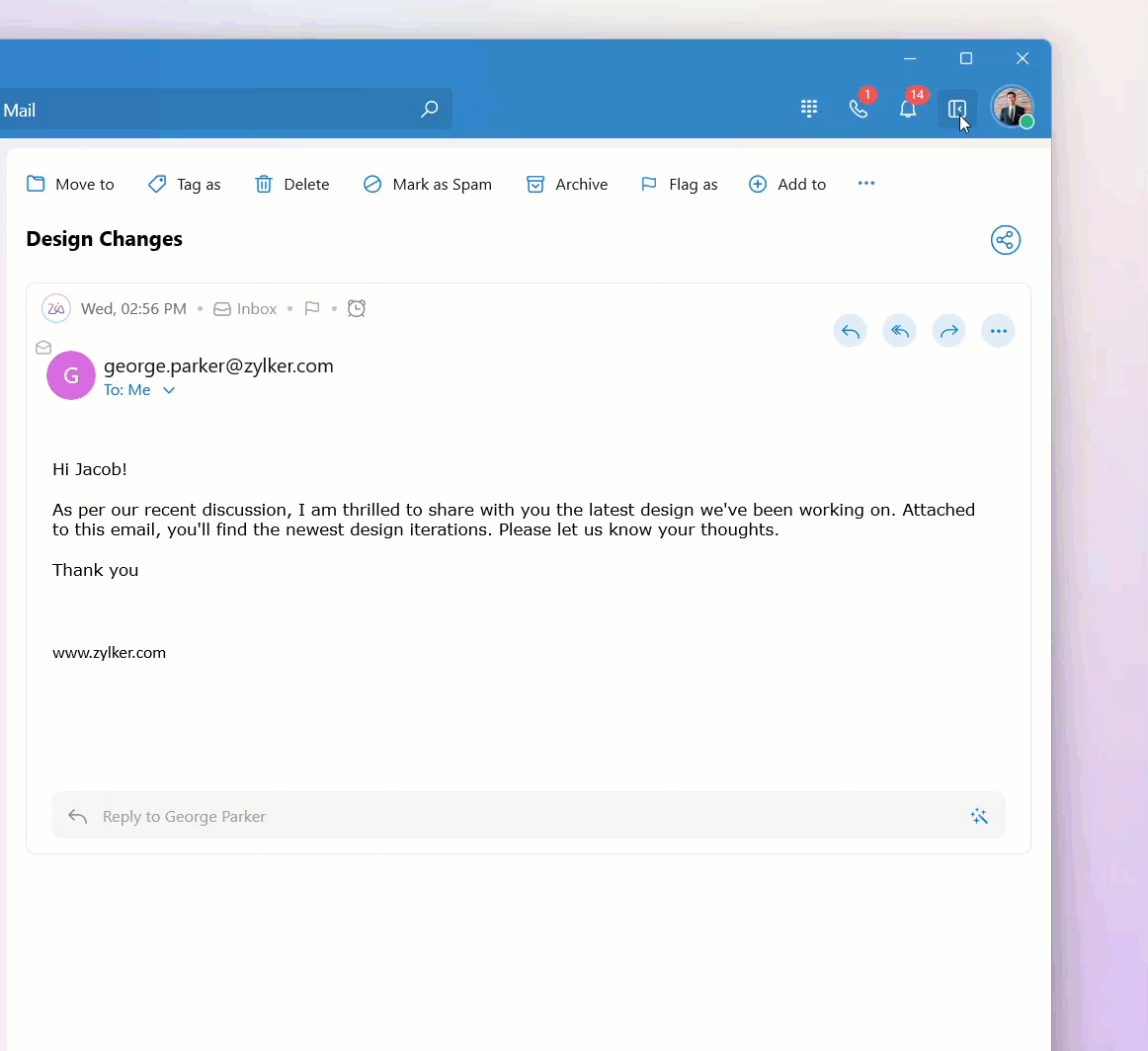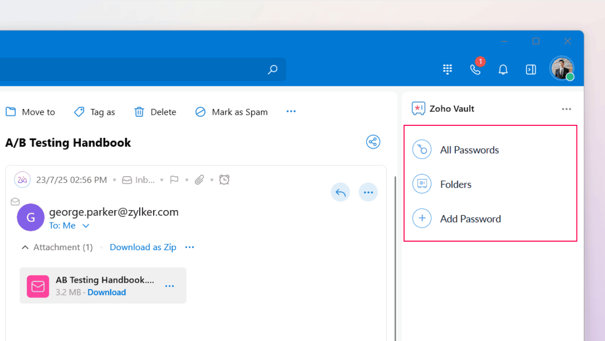 You’ll be redirected to the Zoho Mail web app. Enable Zoho Vault in the top-right corner, then return to Trident.