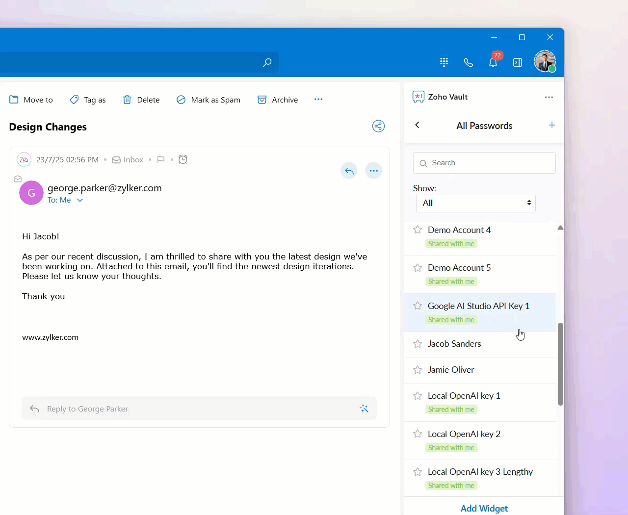 In this article, we'll see how the Zoho Vault widget in Trident enables you to view and manage all of your passwords securely.